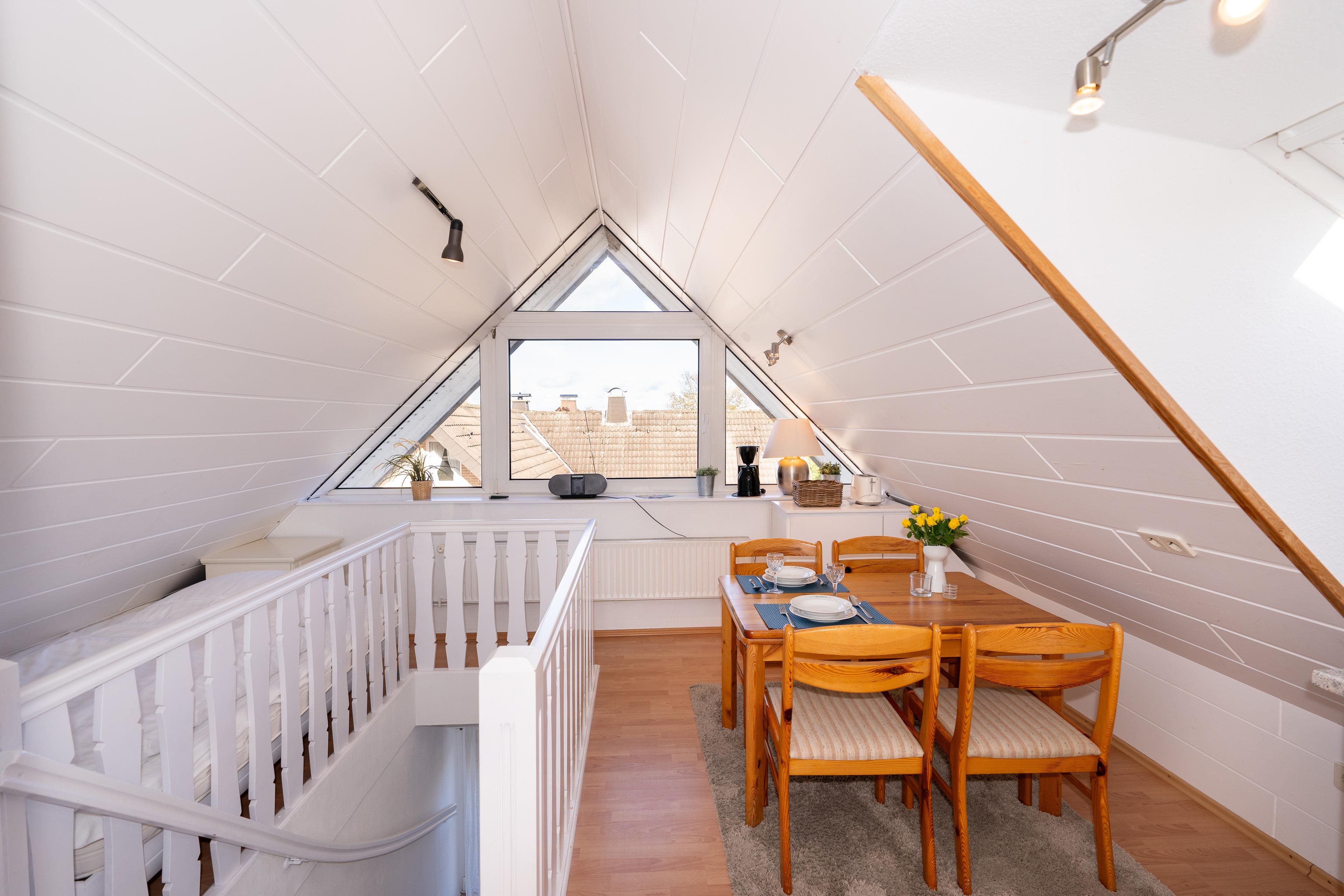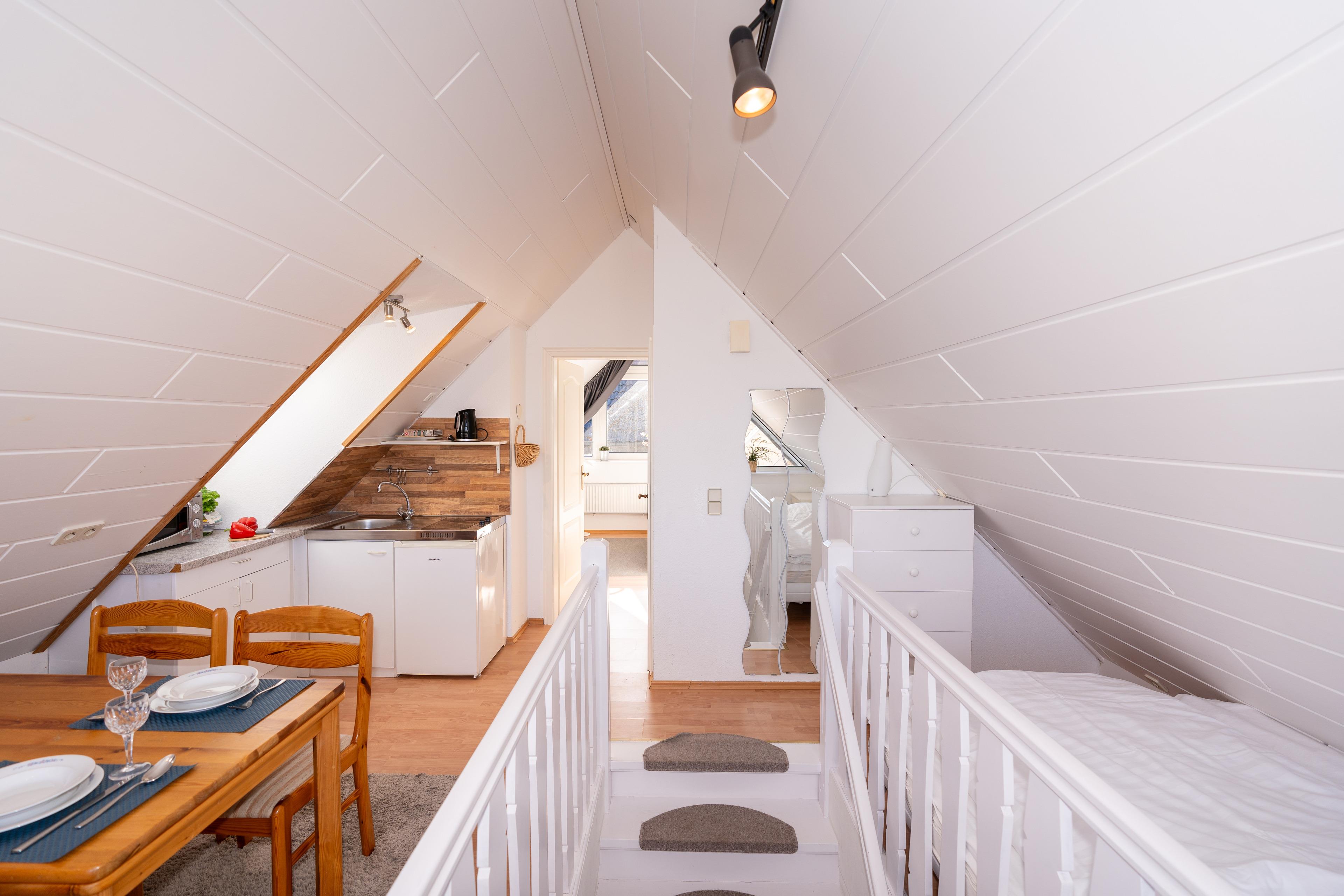 Der Name "Schwalbennest" beschreibt diese charmante Ferienwohnung im 2. Obergeschoss perfekt. Mit einer clever gestalteten Fläche von 25 m² bietet sie in zwei Zimmern eine gemütliche Atmosphäre. Das separate Schlafzimmer ist mit einem Doppelbett (2x 90x200 cm) ausgestattet, während der offene Wohn-/Schlafbereich ein einladendes Einzelbett (135x200 cm) sowie eine praktisch integrierte Küche beherbergt. Diese gemütliche Unterkunft eignet sich ideal für bis zu 2 Erwachsene und ein Kind. Ruhig und strandnah gelegen.
