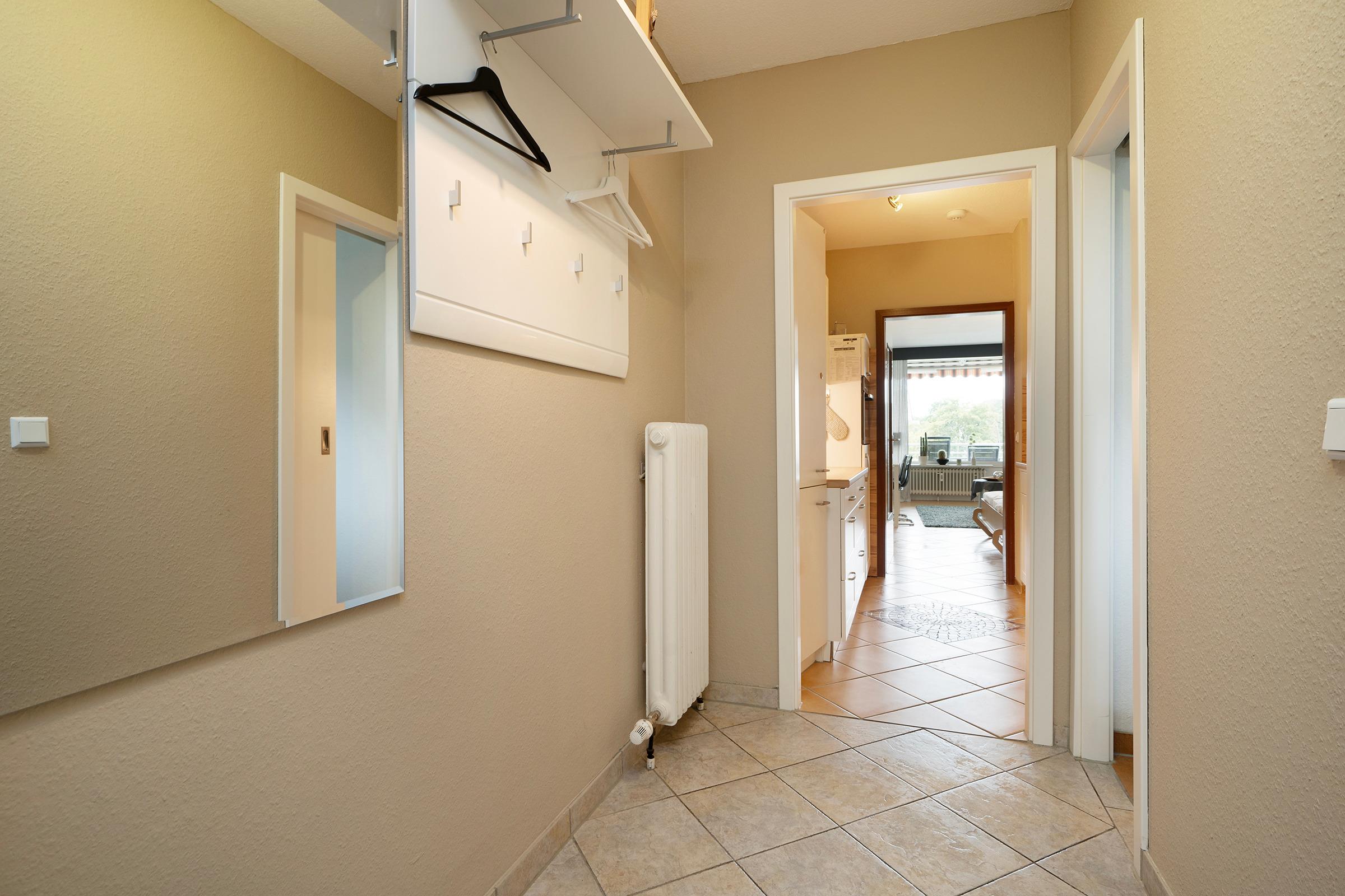 Die Wohnung kann bequem mit dem Fahrstuhl oder über das Treppenhaus erreicht werden. Sie bietet Ihnen einen breiten Eingangsbereich mit Schuhschrank und Garderobe.