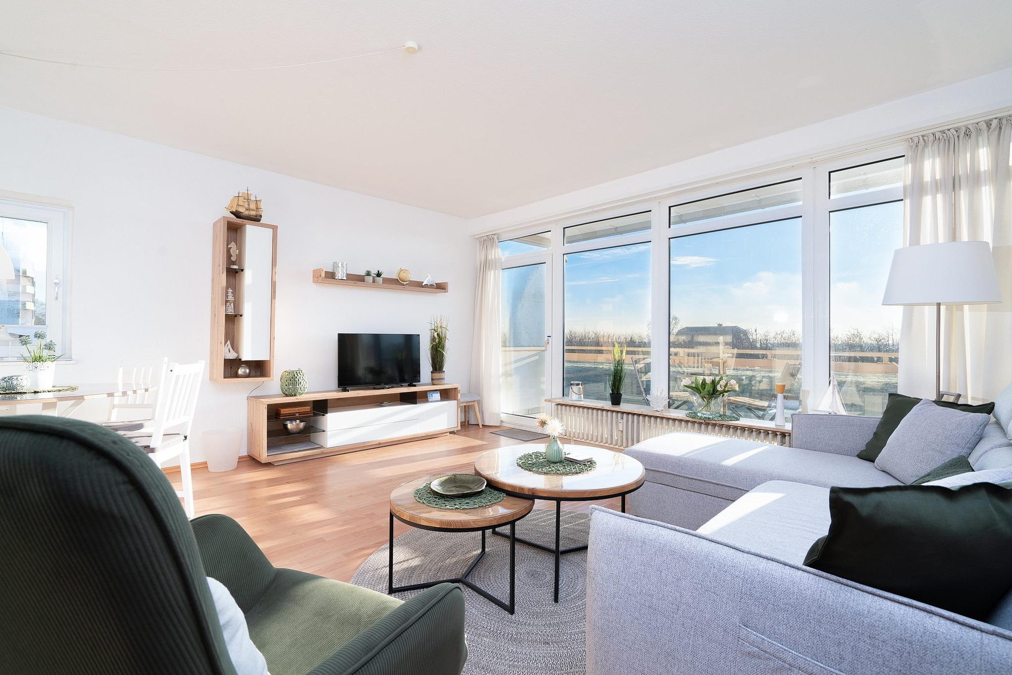 Eine große Wohnanlage direkt am Deich, etwas abseits vom Trubel, daher sehr ruhig. Etwa 15 Minuten zur Ortsmitte und zum Kurzentrum. Direkte Strandlage. 100 m zum Strand und ca. 3 min. zum Hundestrand. Waschmaschine und Trockner gegen Gebühr.