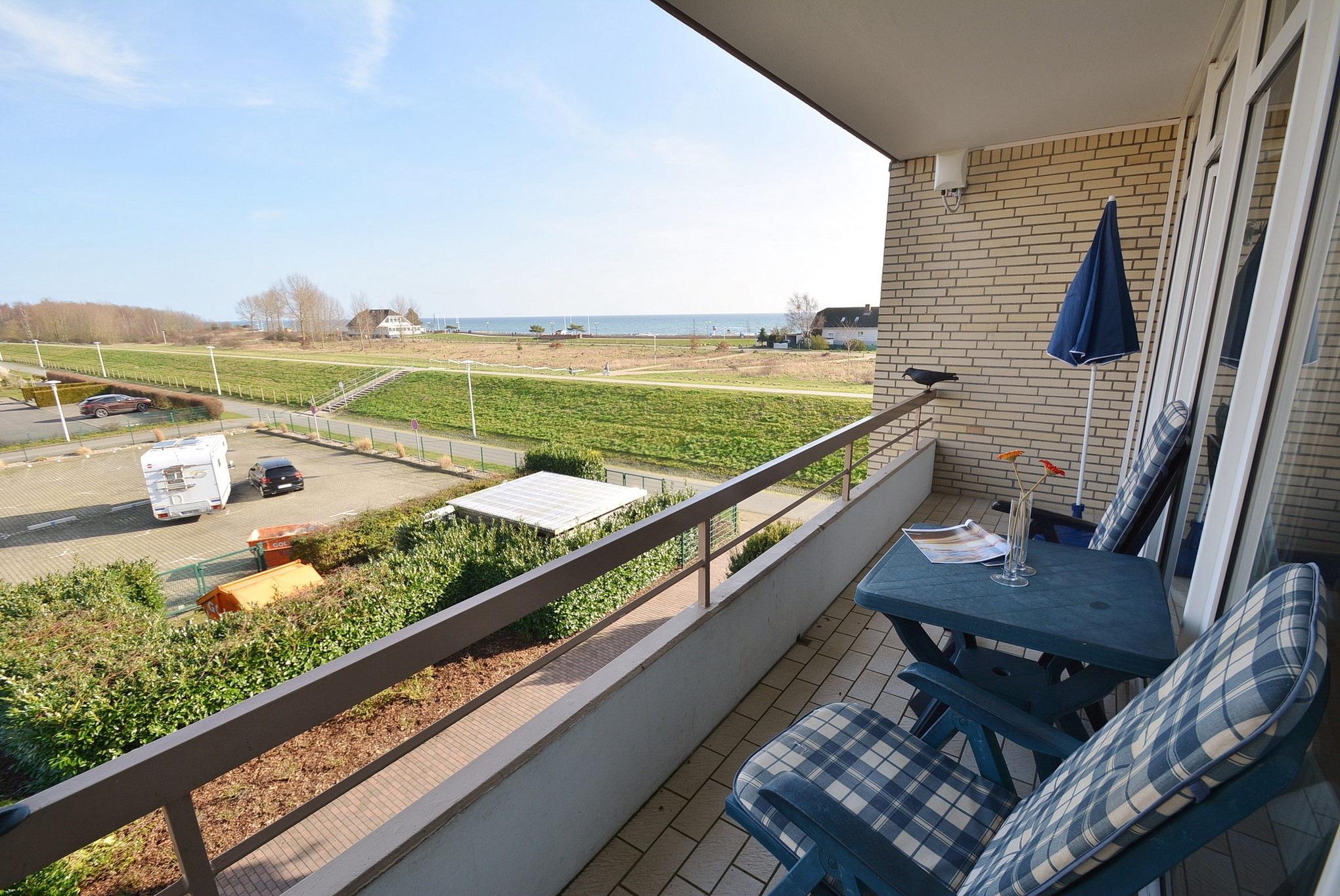 Balkon in östliche Richtung mit Seeblick. PKW-Parkplatz in unmittelbarer Nähe, Fahrradraum im Keller. Waschmaschine und Trockner im Gebäude gegen Gebühr.