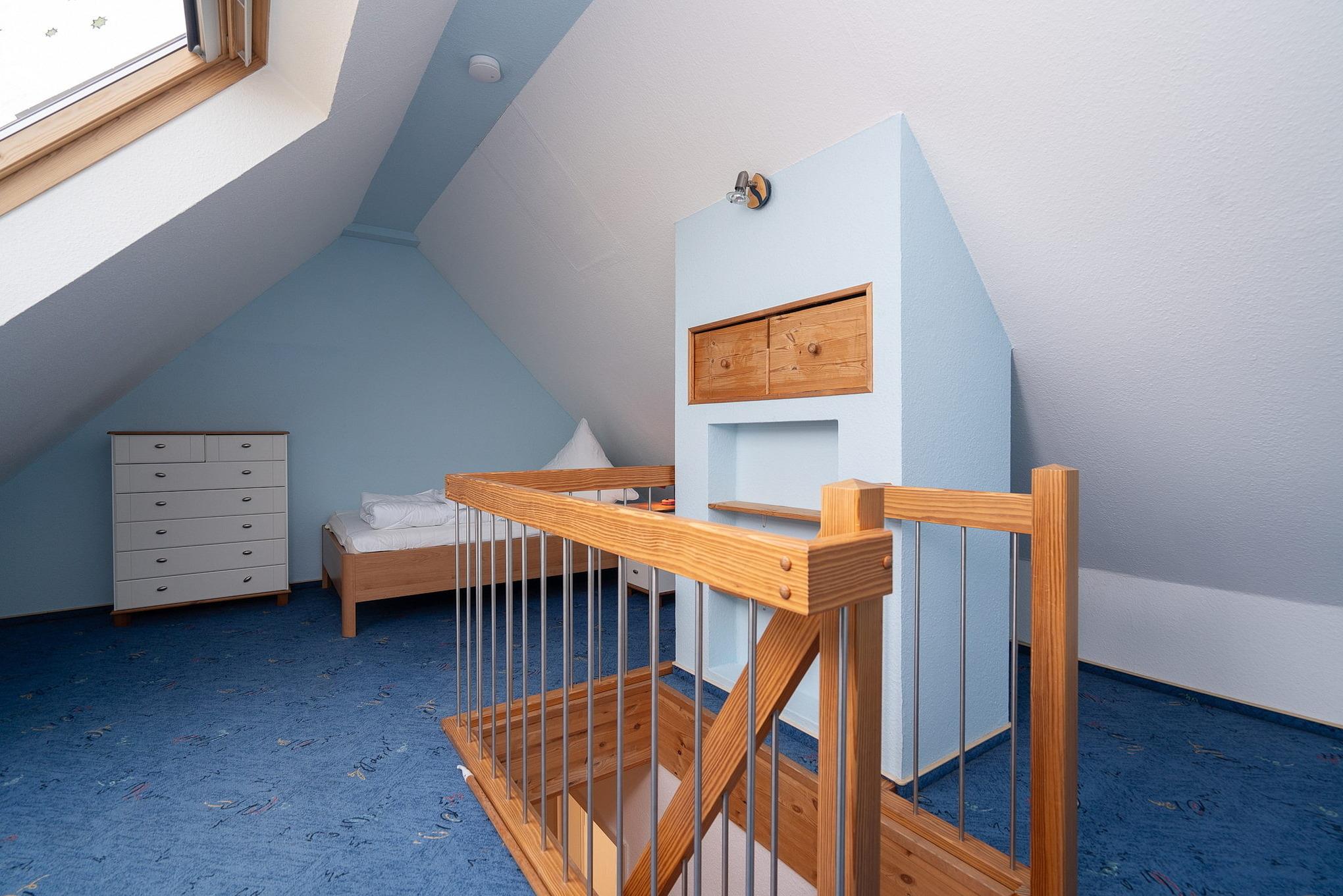 Das Kinderzimmer ist über einer schmale/steile Treppe zu erreichen und ist mit einem Einzelbett (Größe: 120x200cm), einer Kommode und einem Tisch mit 2 Stühlen ausgestattet. Befindet sich im 2. Obergeschoss.