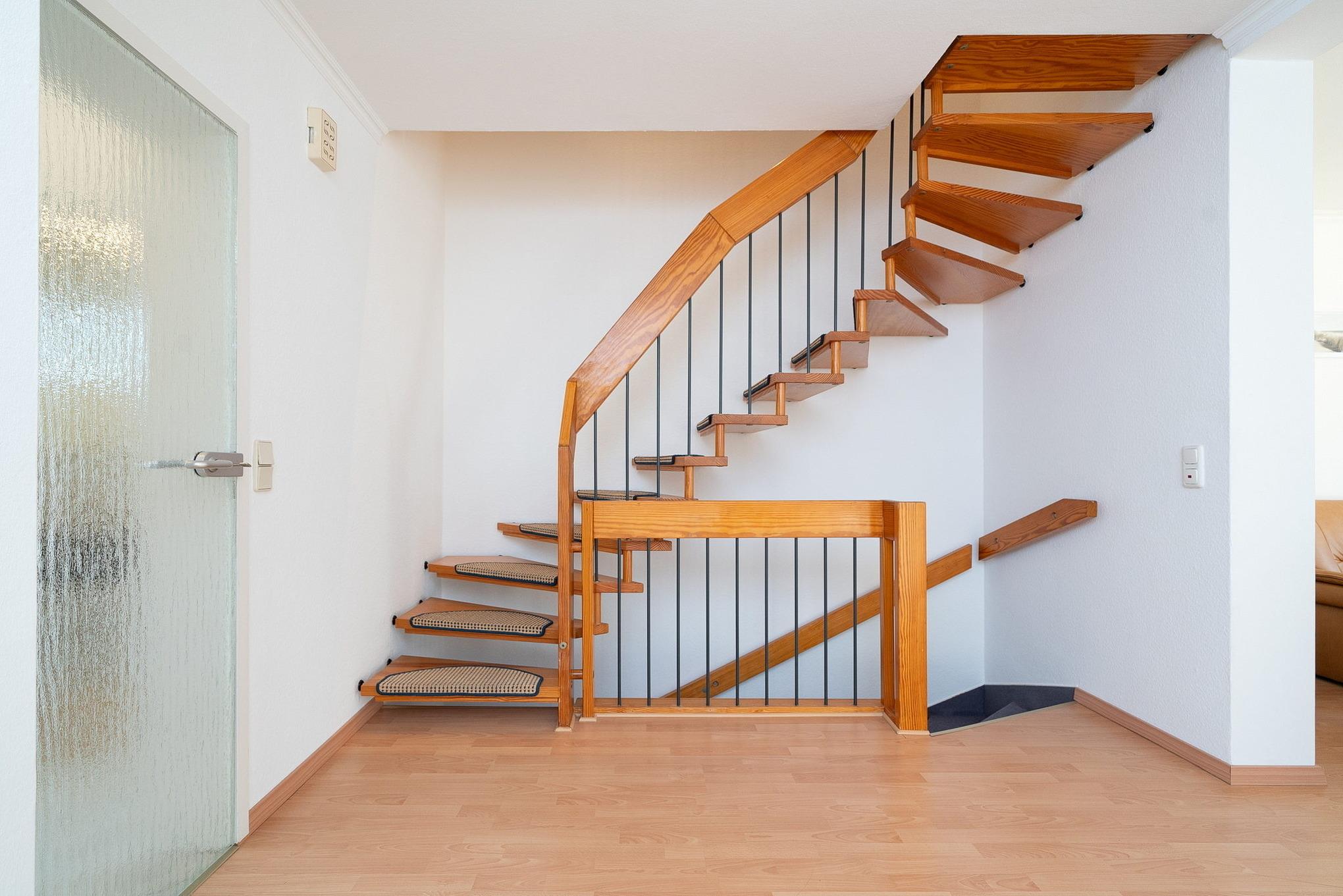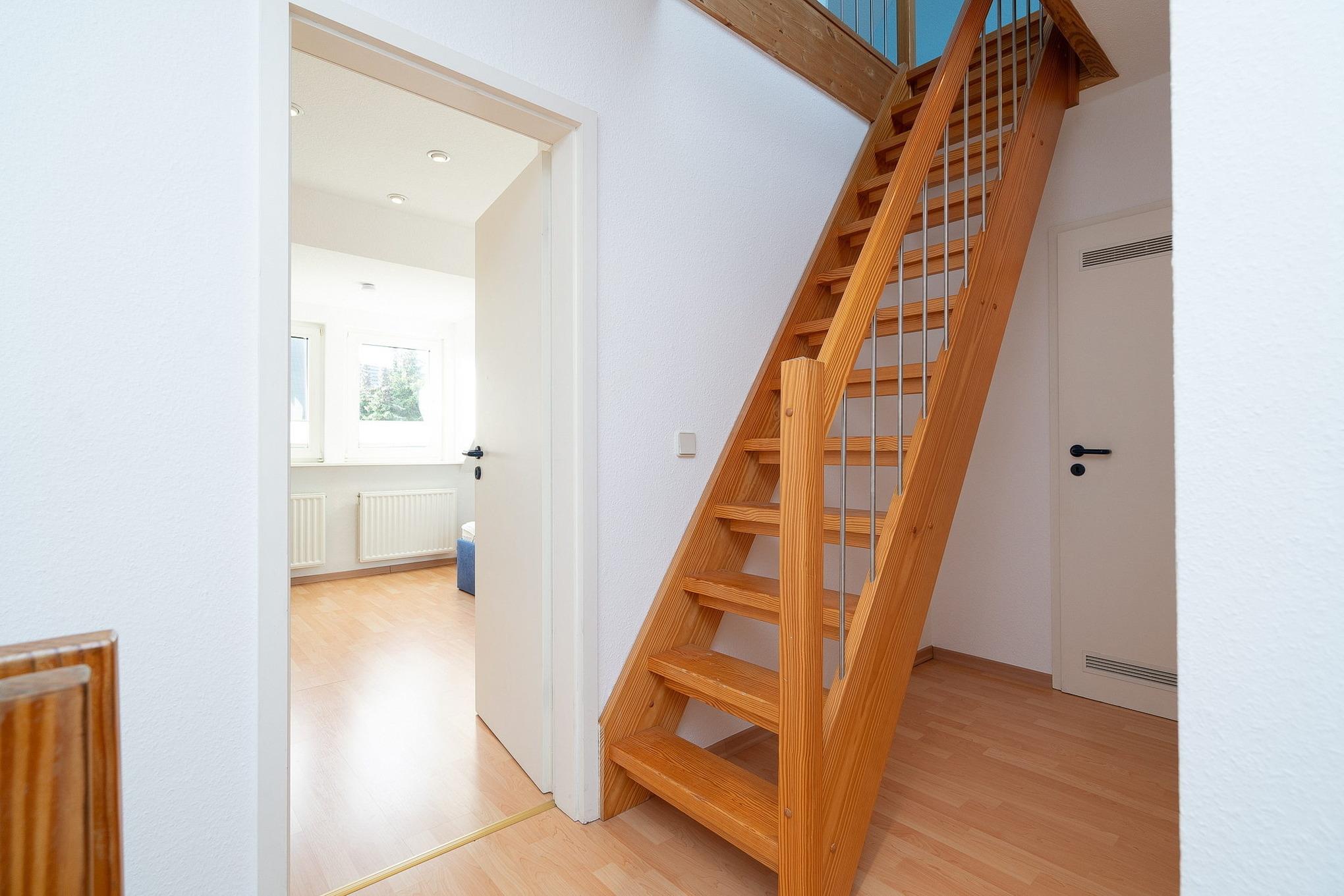 Über eine Treppe gelangen Sie ins Obergeschoss zu den Schlafräumen.