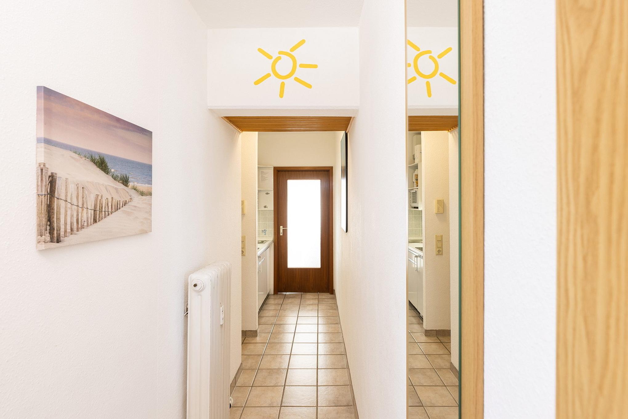 Die Wohnung befindet sich im 3. OG im Grömitz-Center 2 (Fahrstuhl vorhanden, es führen 4 Stufen zur Wohnung)