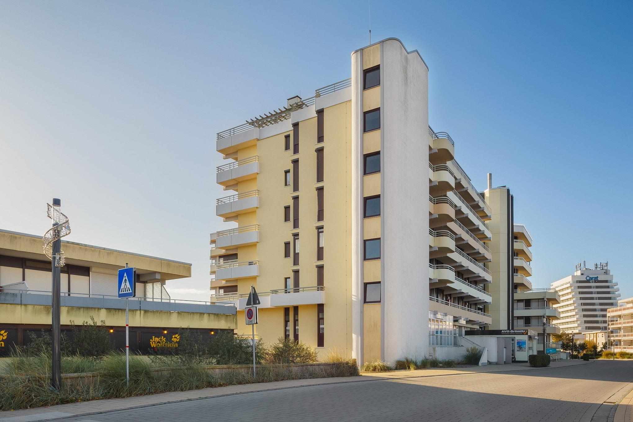 Das Grömitz-Center befindet sich direkt an der Strandpromenade nur wenige Schritte vom Strand und Meer entfernt. Die 'Grömitzer Welle' mit Wellenbad und Sauna befindet sich in unmittelbarer Nähe.