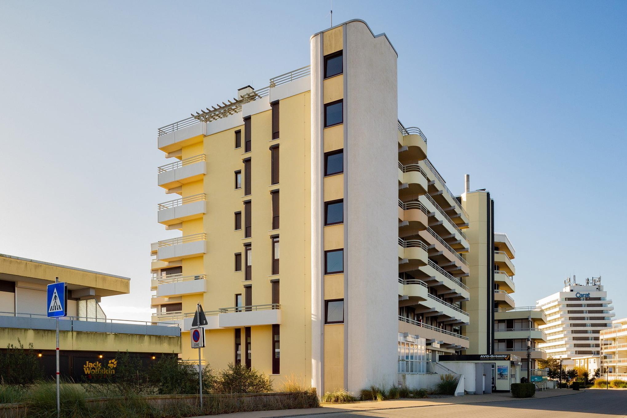 Das Grömitz-Center befindet sich direkt an der Strandpromenade nur wenige Schritte vom Strand und Meer entfernt. Die 'Grömitzer Welle' mit Wellenbad und Sauna befindet sich in unmittelbarer Nähe.