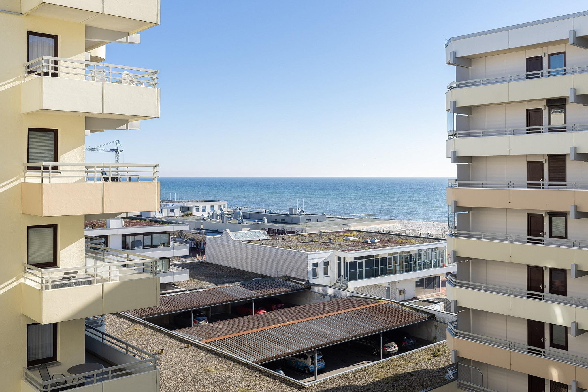 Die Wohnung befindet sich im 6. Stock im Grömitz-Center 1. Ein Aufzug ist in unmittelbarer Nähe vom Parkplatz vorhanden.