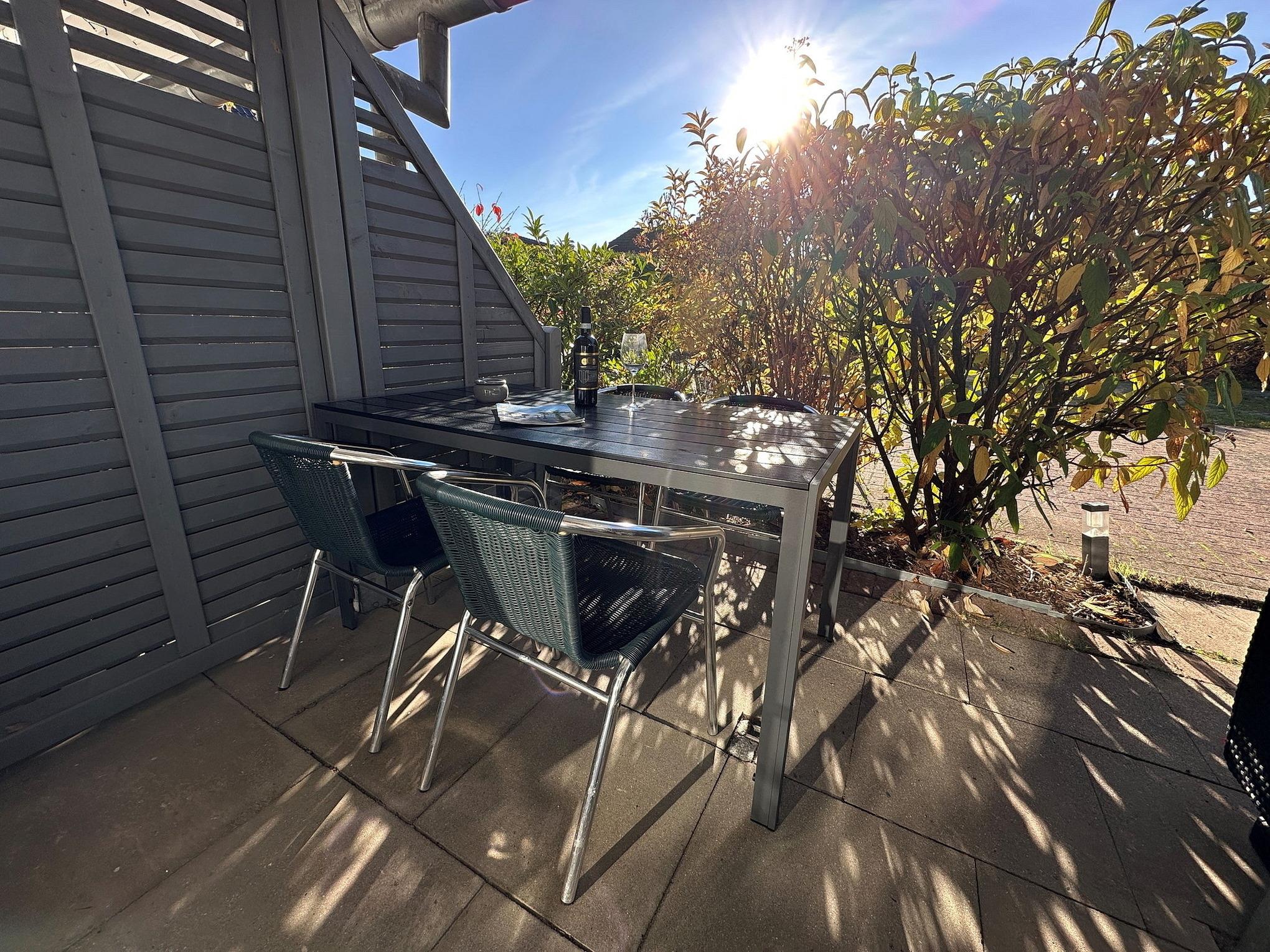 PKW-Stellplatz direkt am Haus, Terrasse in südliche Richtung, Fahrradabstellfläche im Freien hinter dem Gebäude. Reisekinderbett und Hochstuhl sind im Haus zur kostenlosen Benutzung vorhanden.