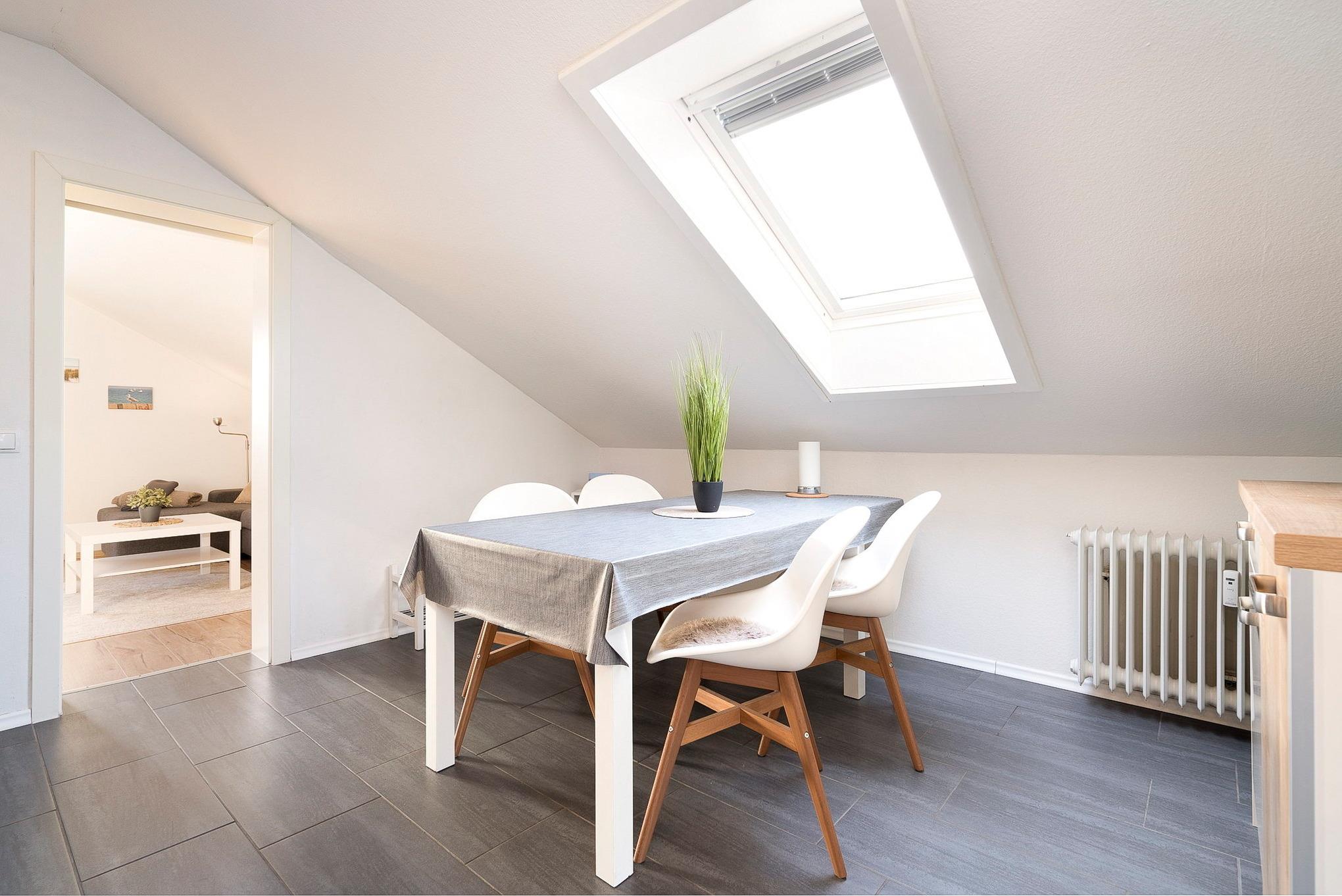 Die Dachgeschosswohnung befindet sich im 1. OG