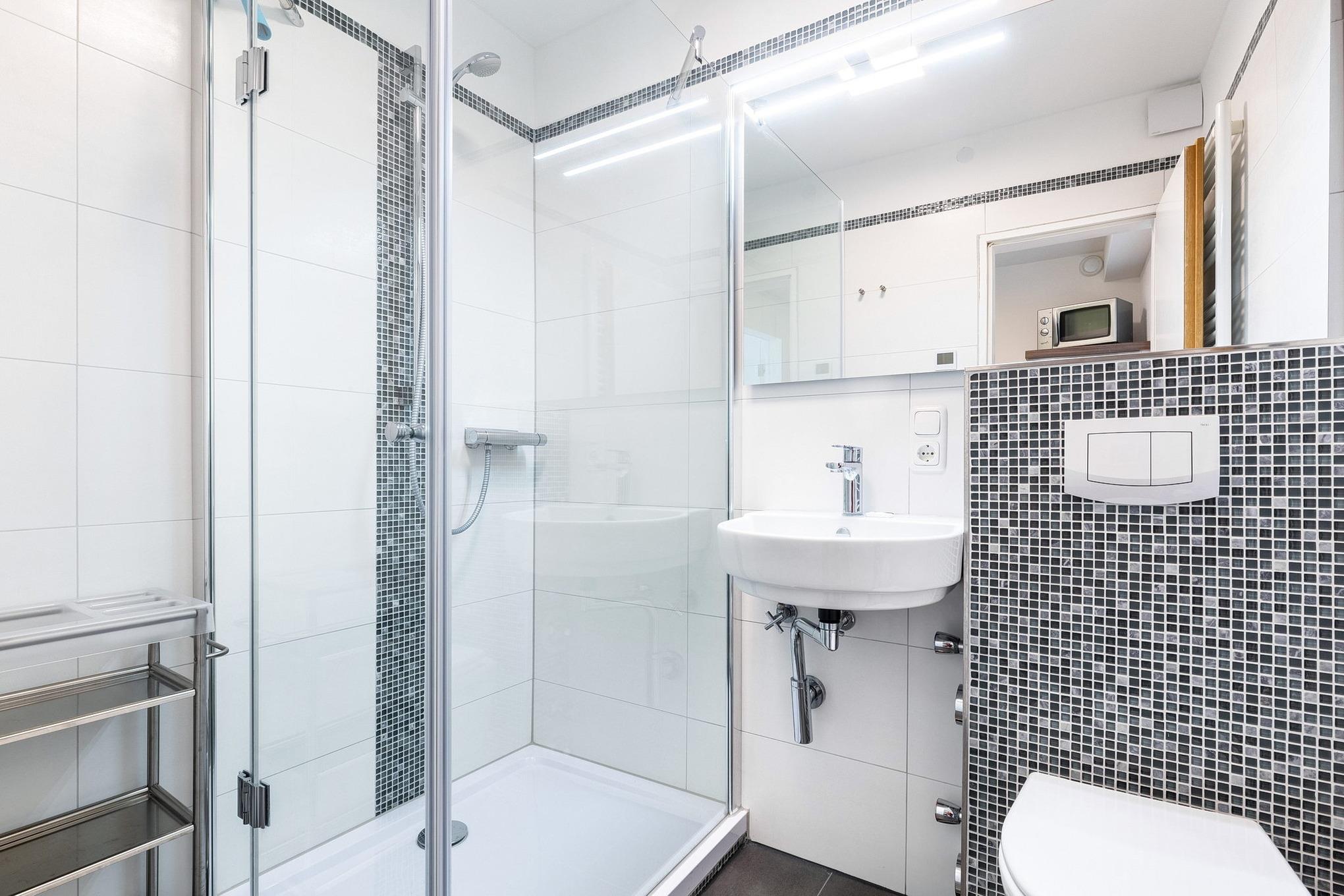 Neues im Jahr 2020 renoviertes Bad mit Dusche, WC und Waschbecken.