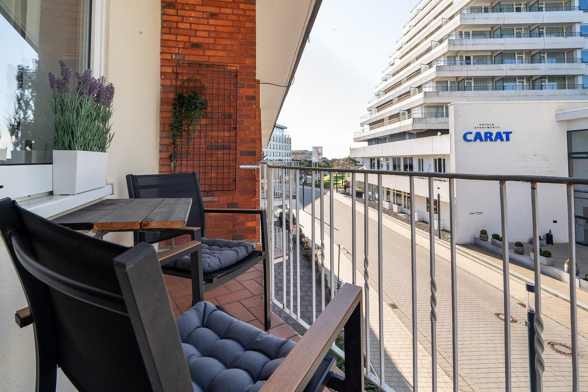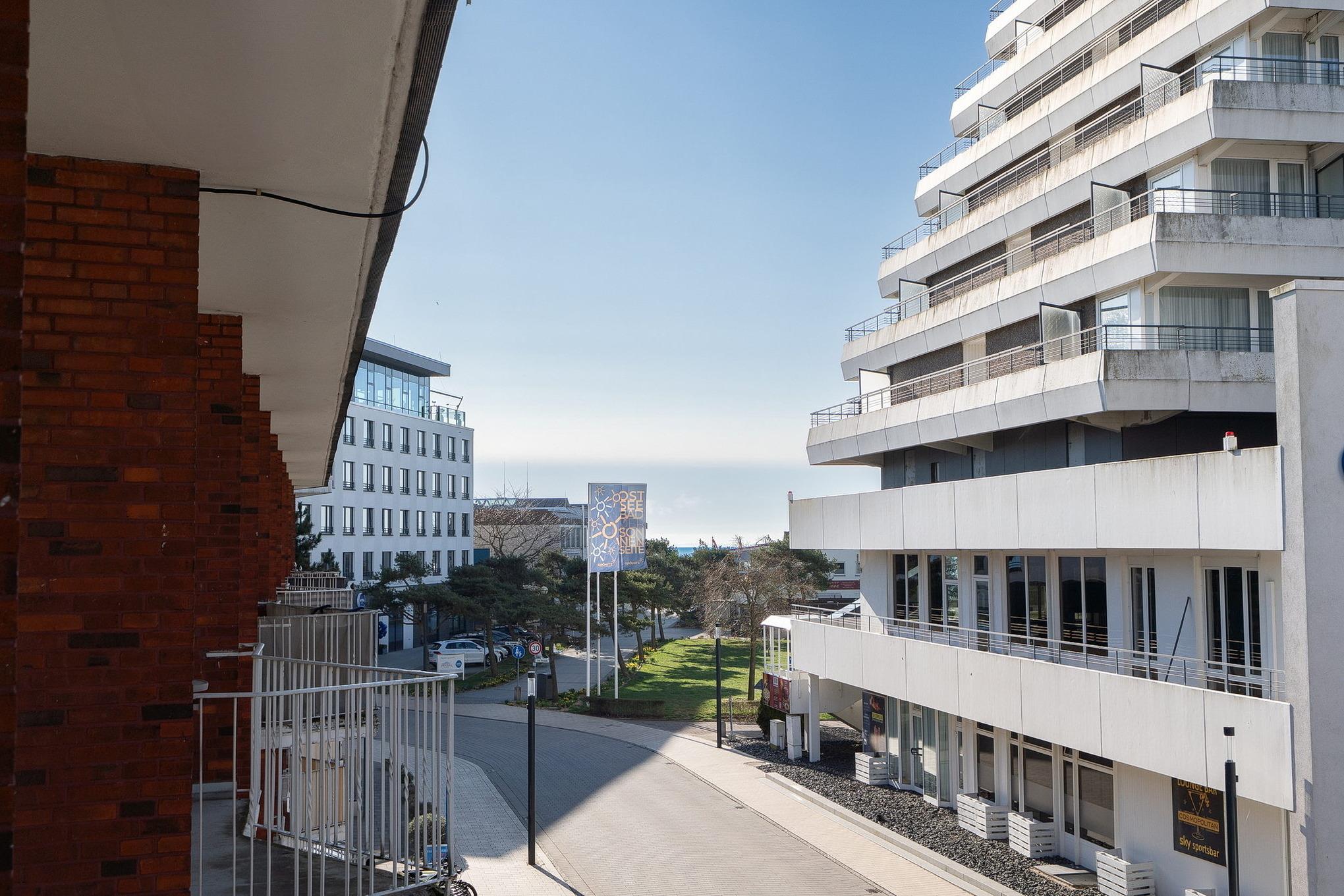 Kleiner Balkon in westliche Richtung mit Teilseeblick. Auf allen kostenpflichtigen Parkplätzen in Grömitz können Sie Ihren PKW für die Dauer des Aufenthaltes kostenfrei (zur der Whg. gehört eine Parkkarte) parken.