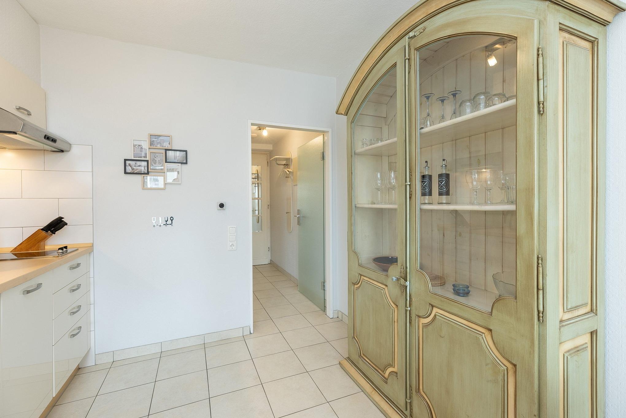 Balkon in süd-westliche Richtung mit seitlichem Seeblick und Markise, sehr steile Auffahrt zum PKW-Stellplatz, Waschmaschine und Trockner im Haus, Fahrstuhl mit ebenerdigem Zugang.