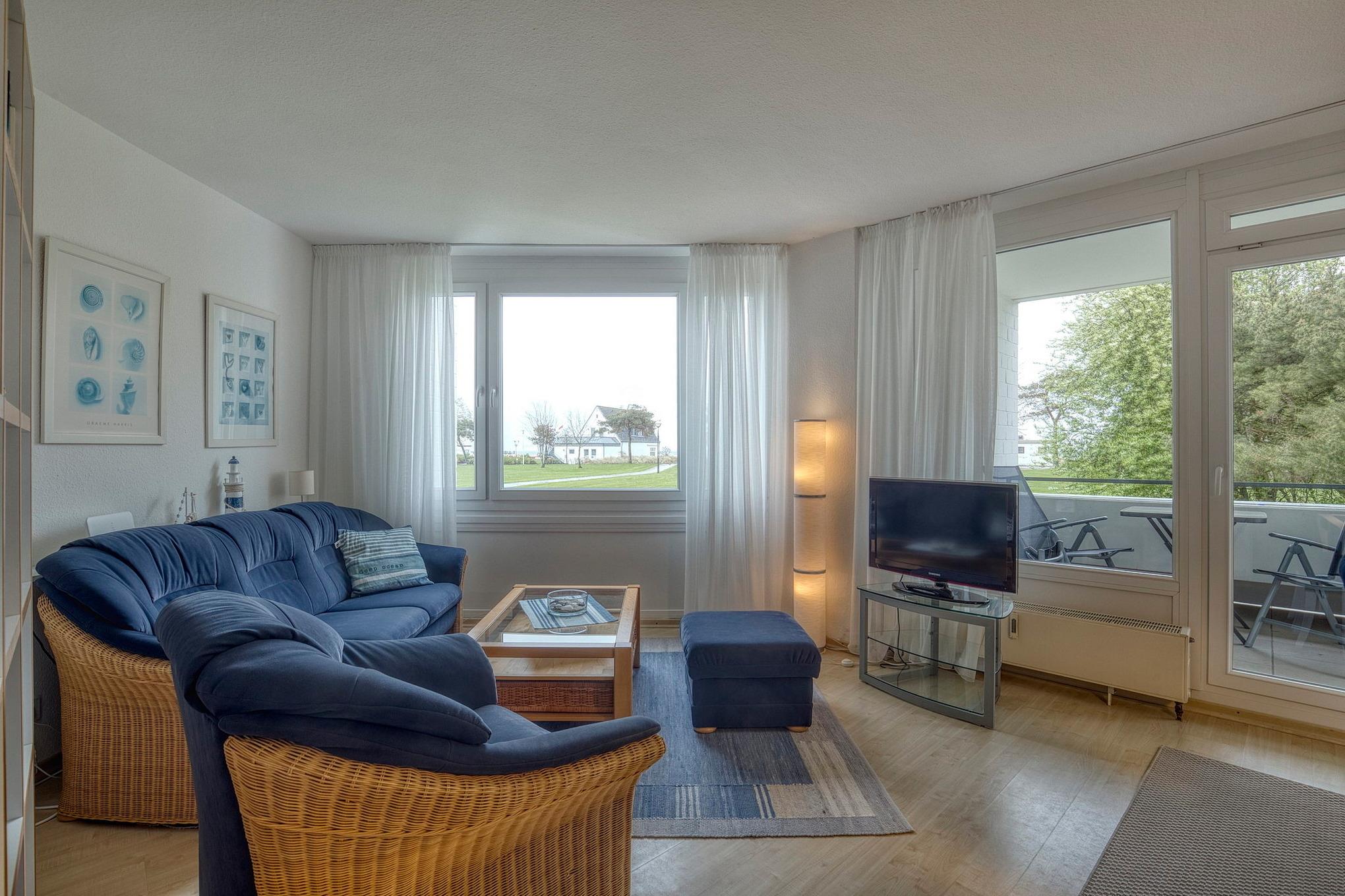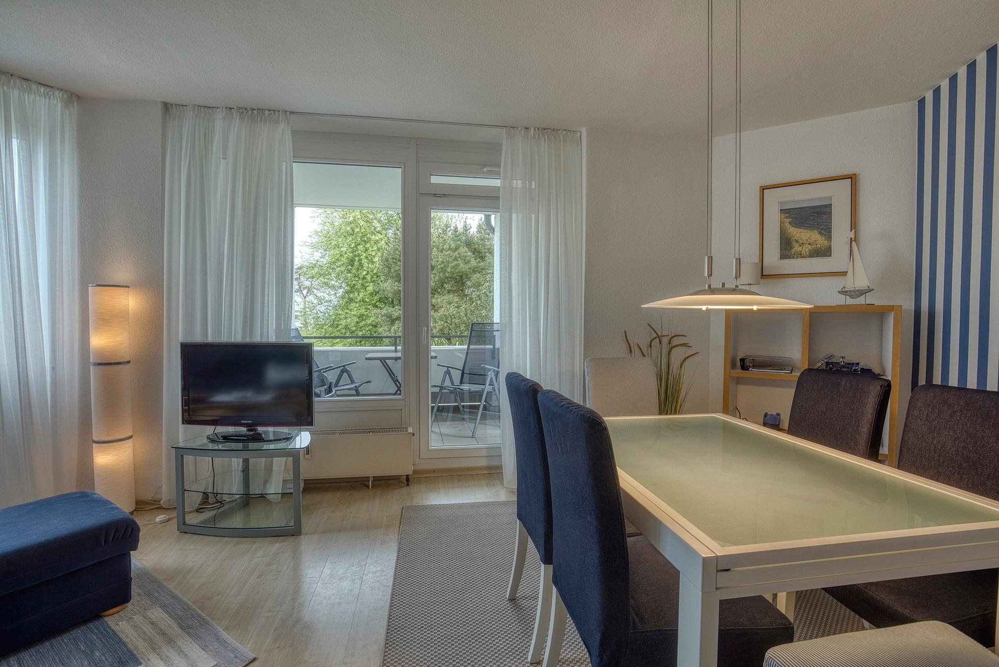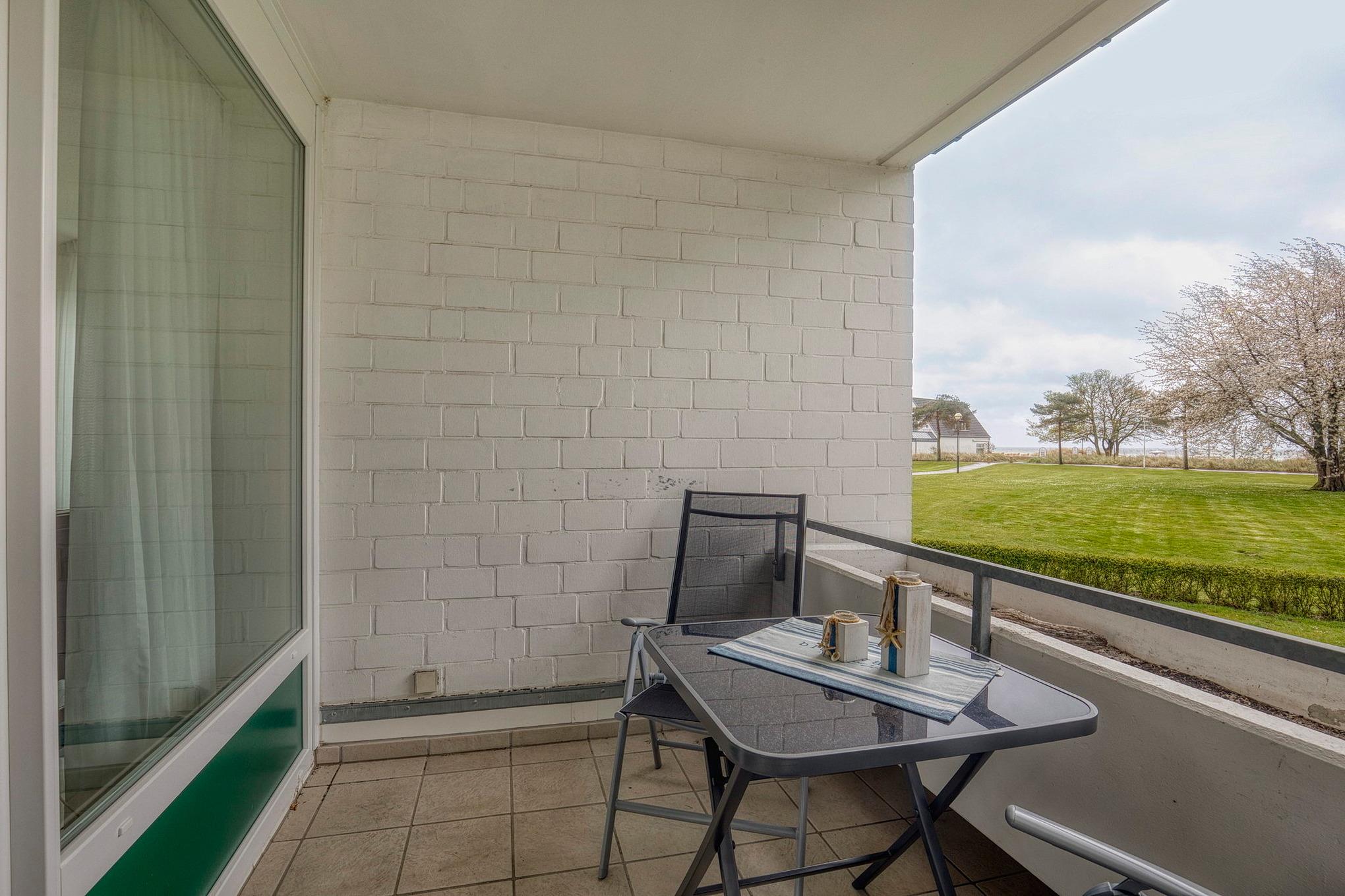 Sehr gepflegte Ferienanlage mit großzügiger Rasenfläche in der 1. Reihe, nur ca. 100m bis zur Promenade und vom Sandstrand (eigener Strandzugang) entfernt. Die Seebrücke erreichen Sie in ca. 2 Gehminuten, bis zum Yachthafen gehen Sie ca. 5 Minuten. Im Haus befindet sich ein Fahrstuhl, der ebenerdig erreicht werden kann. Waschmaschine und Trockner stehen im Haus gegen Gebühr zur Verfügung.