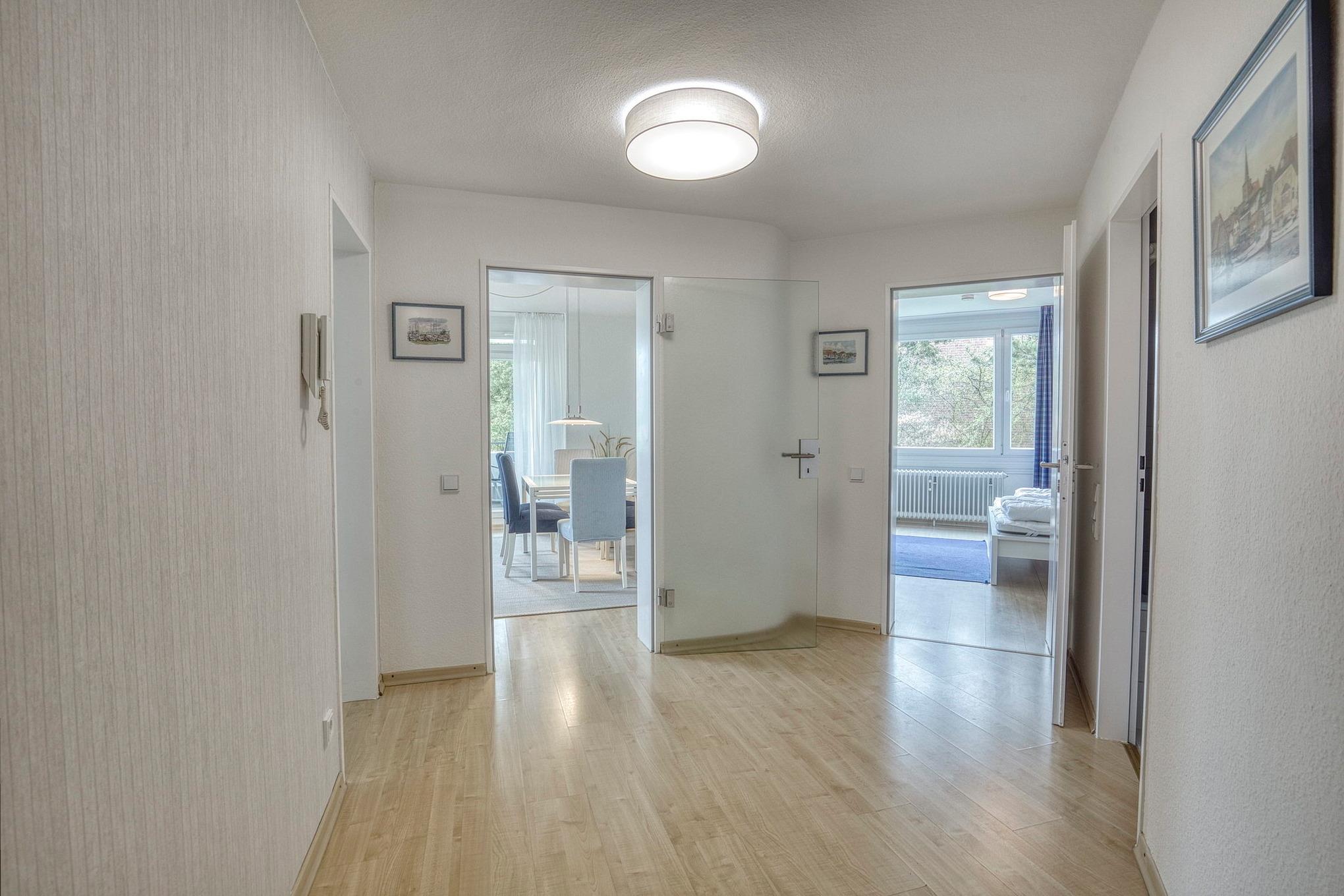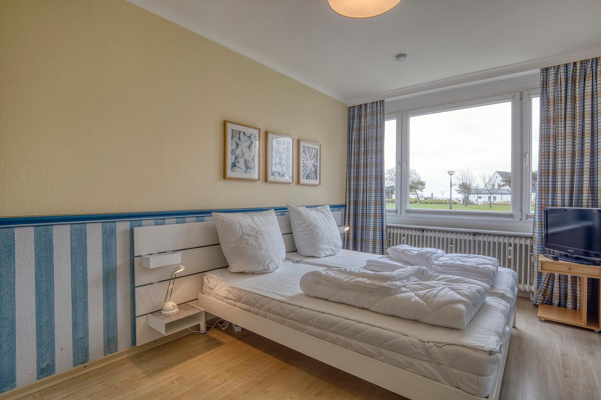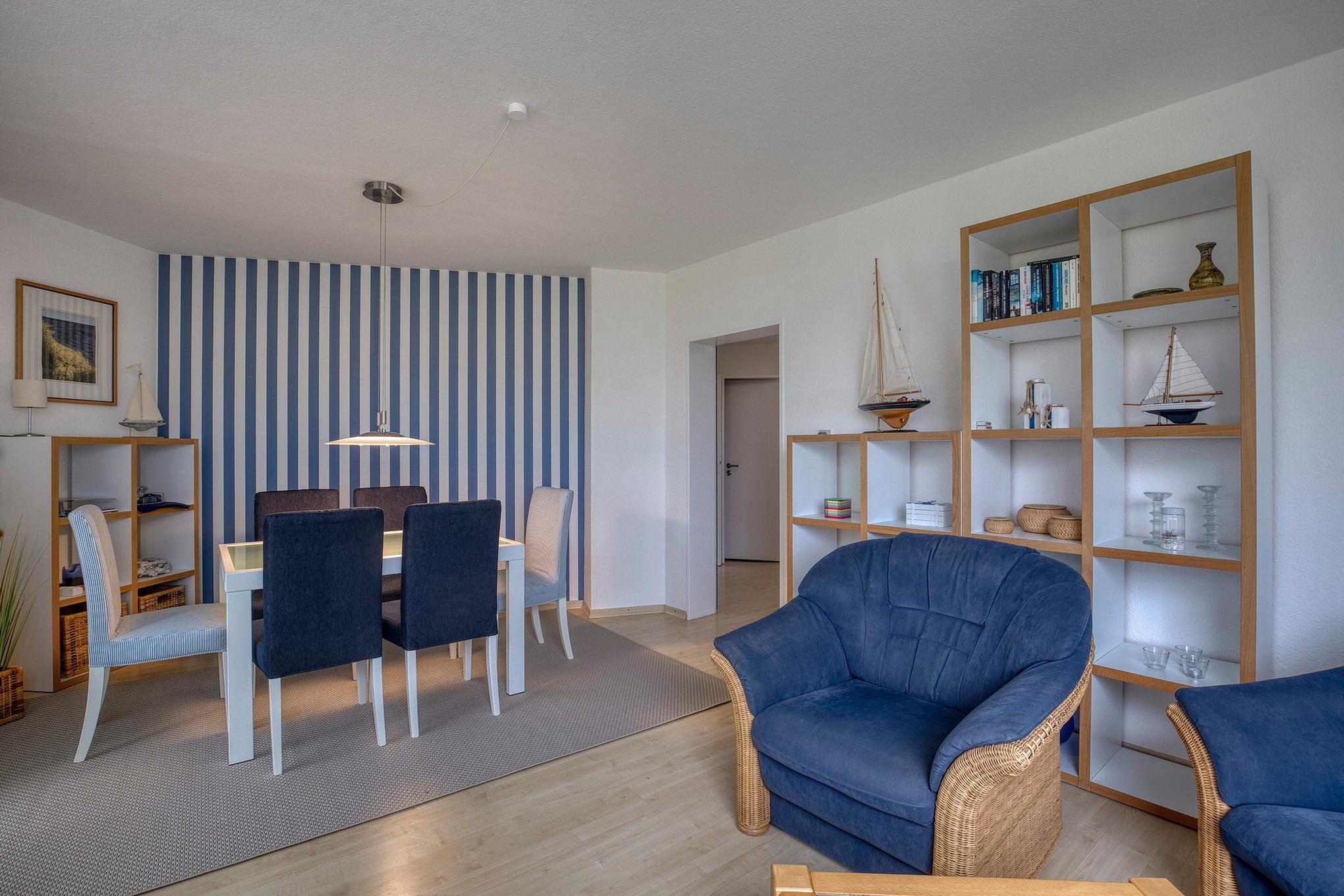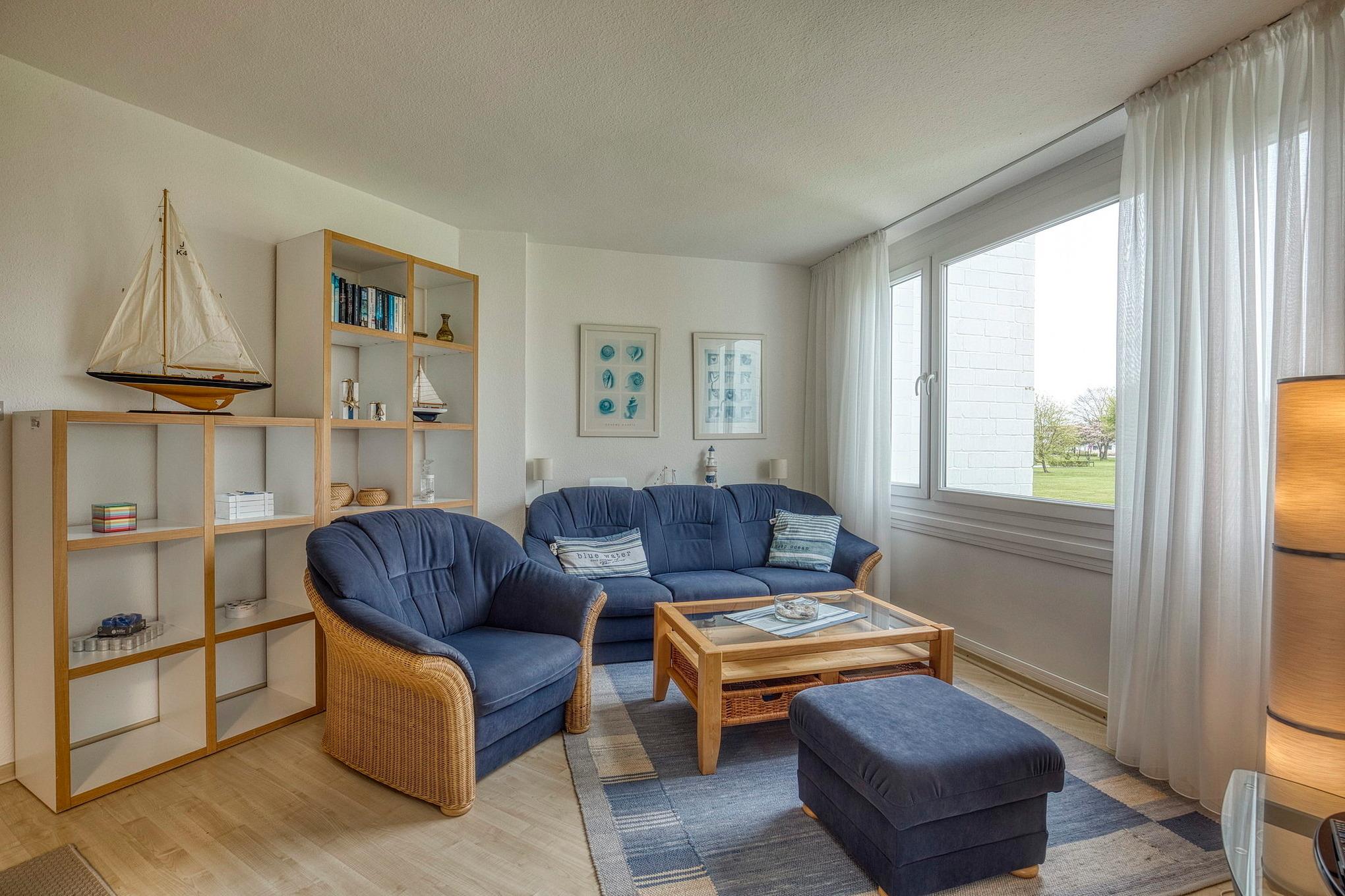 Sehr gepflegte Ferienanlage mit großzügiger Rasenfläche in der 1. Reihe, nur ca. 100m bis zur Promenade und vom Sandstrand (eigener Strandzugang) entfernt. Die Seebrücke erreichen Sie in ca. 2 Gehminuten, bis zum Yachthafen gehen Sie ca. 5 Minuten. Im Haus befindet sich ein Fahrstuhl, der ebenerdig erreicht werden kann. Waschmaschine und Trockner stehen im Haus gegen Gebühr zur Verfügung.