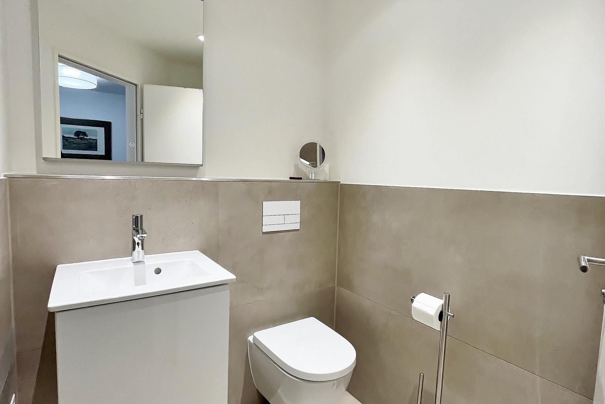 Ein separates, ebenfalls renoviertes Gäste-WC ist vorhanden.