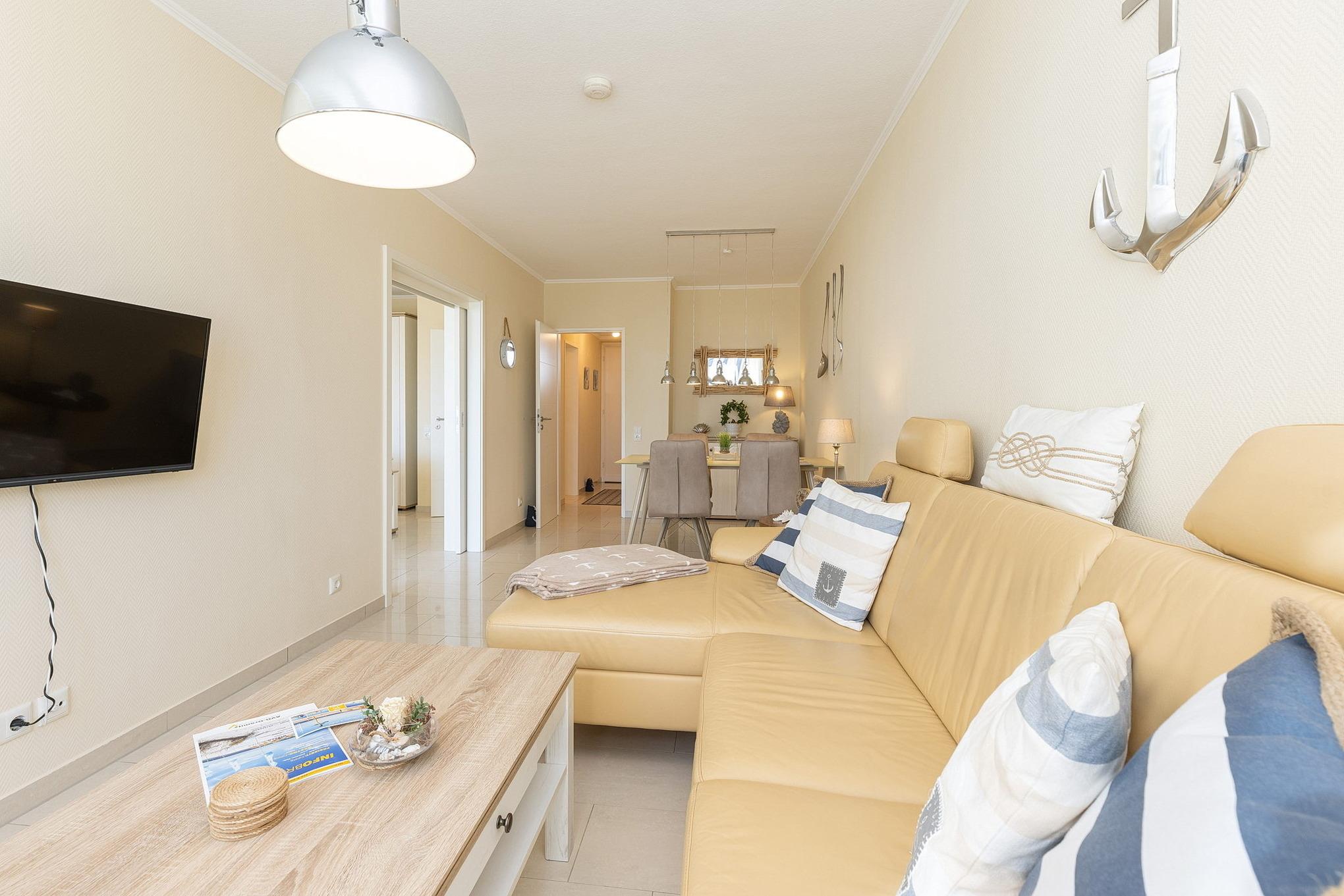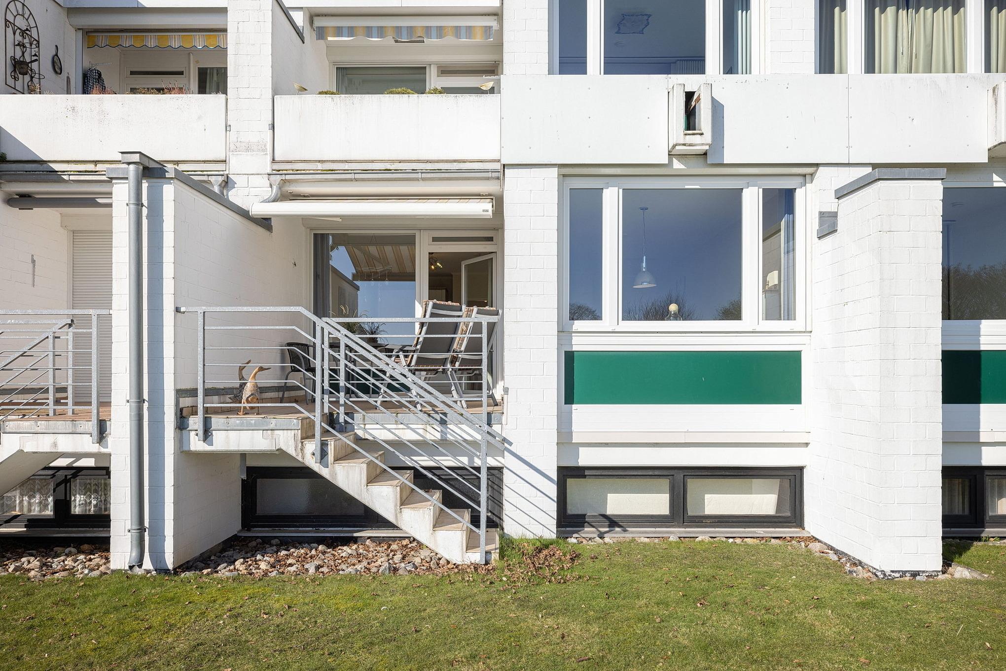 Sehr gepflegte Ferienanlage mit großzügiger Rasenfläche in 1. Reihe, nur ca. 100m bis zur Promenade und vom Sandstrand (eigener Strandzugang) entfernt. Die Seebrücke erreichen Sie in ca. 2 Gehminuten, bis zum Yachthafen gehen Sie ca. 5 min. Im Haus befindet sich ein Fahrstuhl, der ebenerdig erreicht werden kann. Waschmaschine und Trockner stehen zur Verfügung (gegen Gebühr)