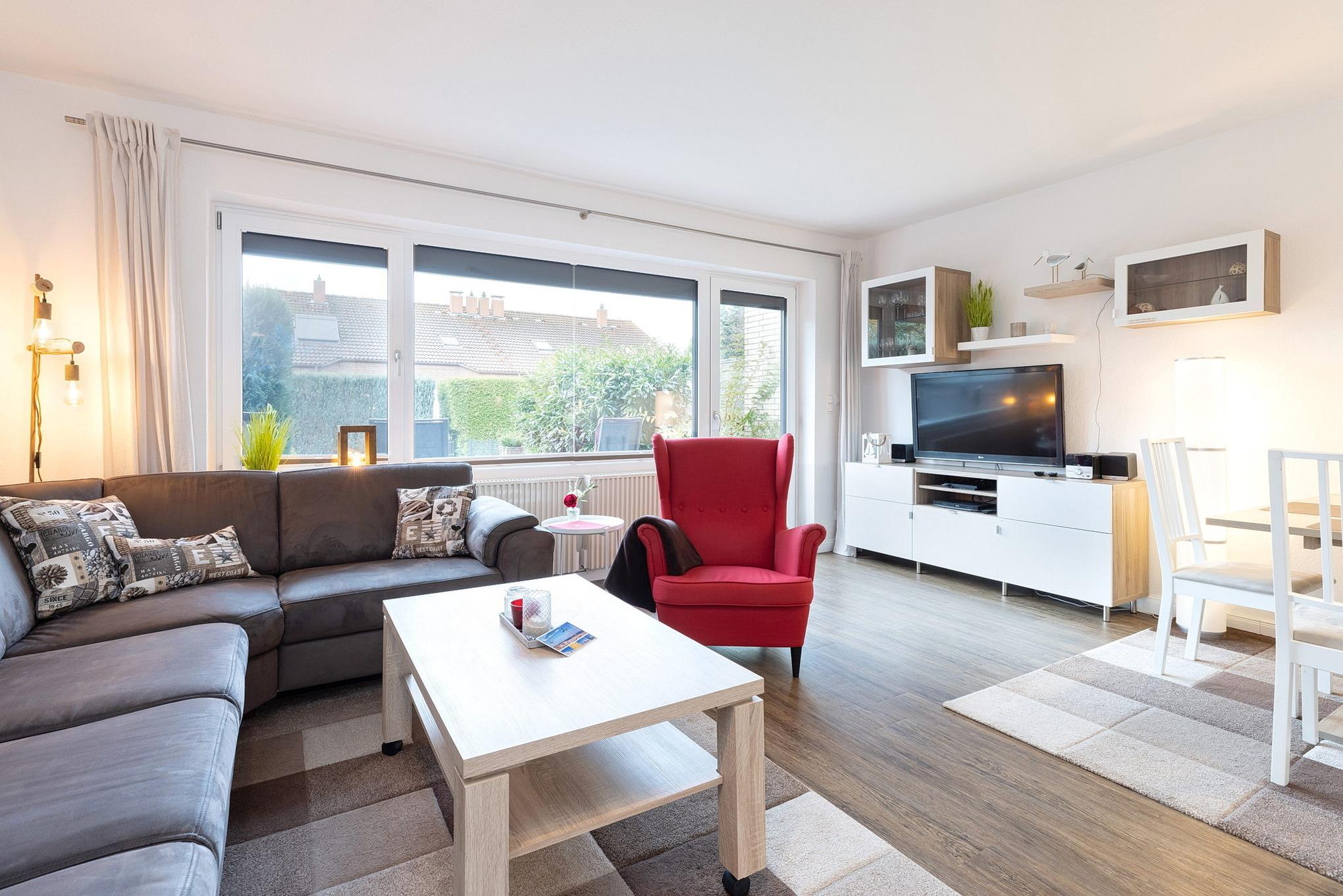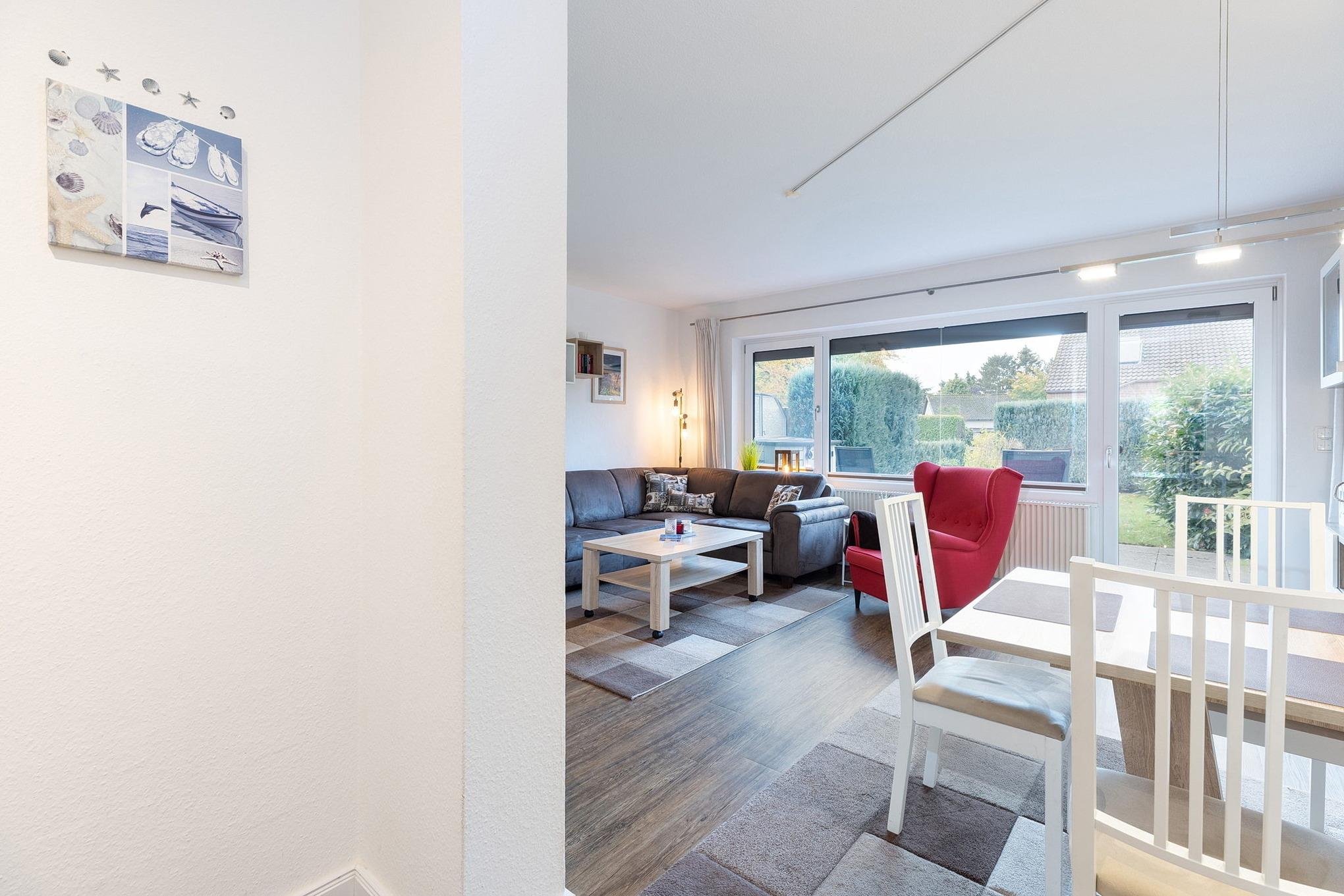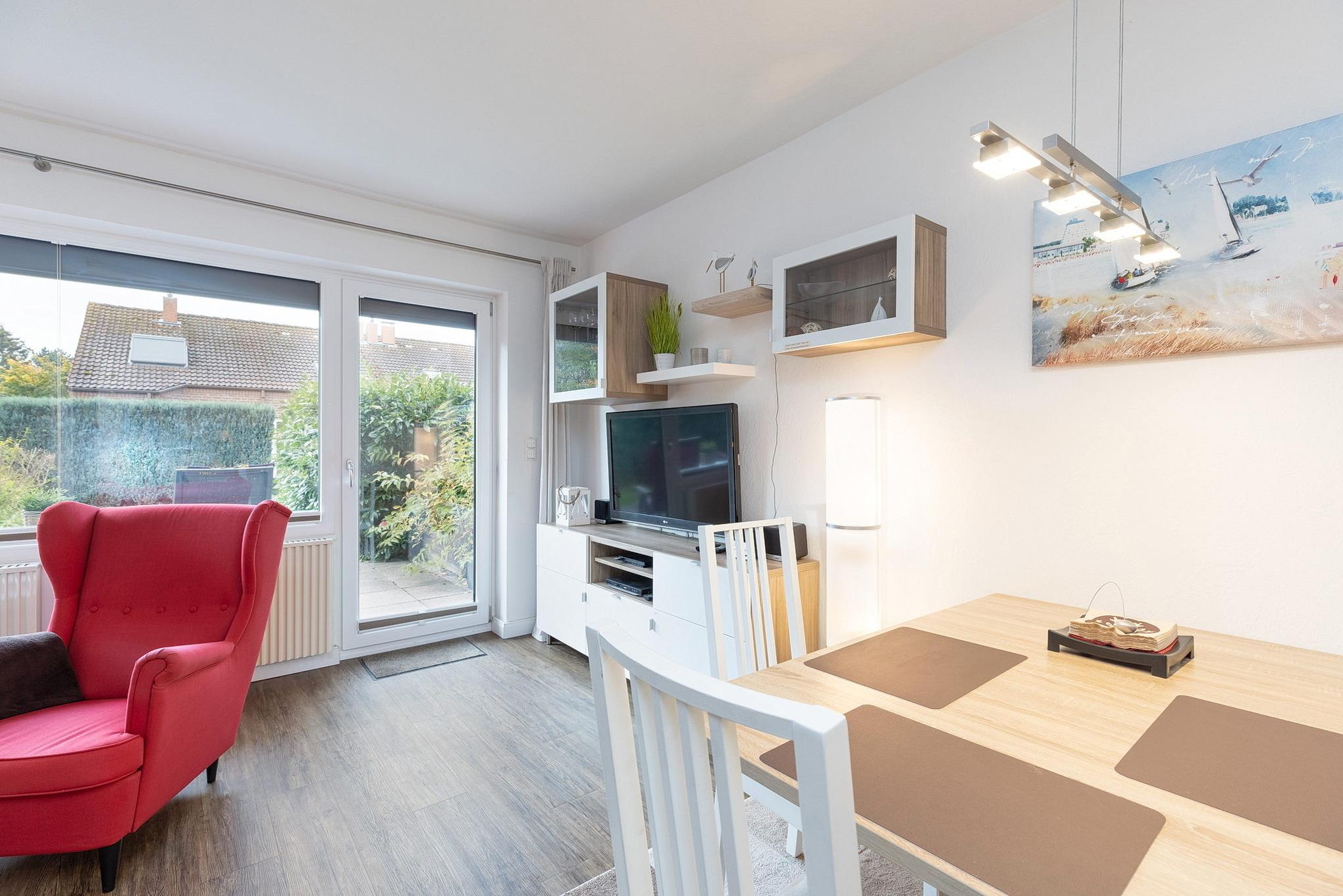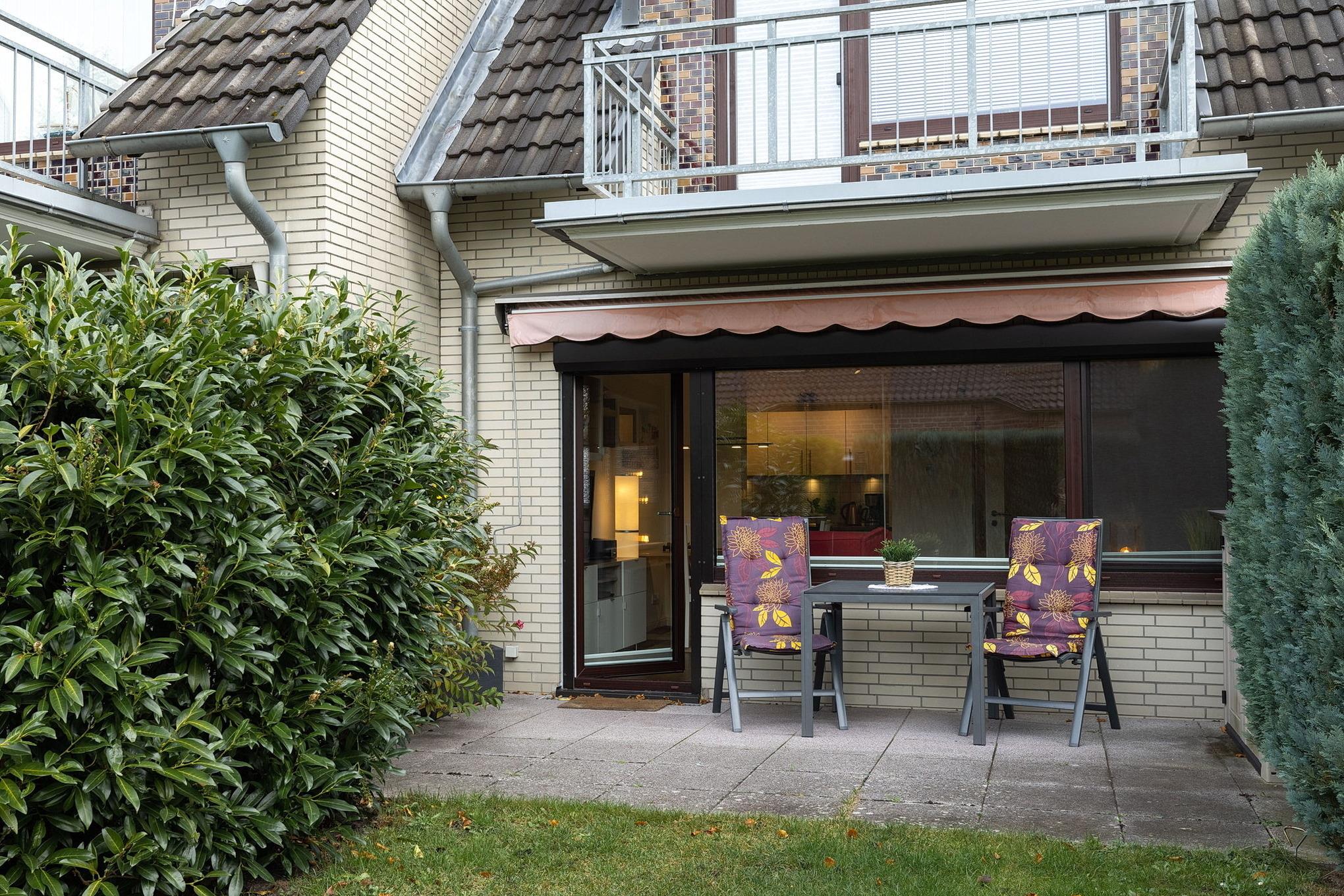 Die EG-Wohnung befindet sich in ruhiger Lage in einem gepflegten Reihenmittelhaus nur wenige Gehminuten vom Strand und dem nächsten Supermarkt entfernt.