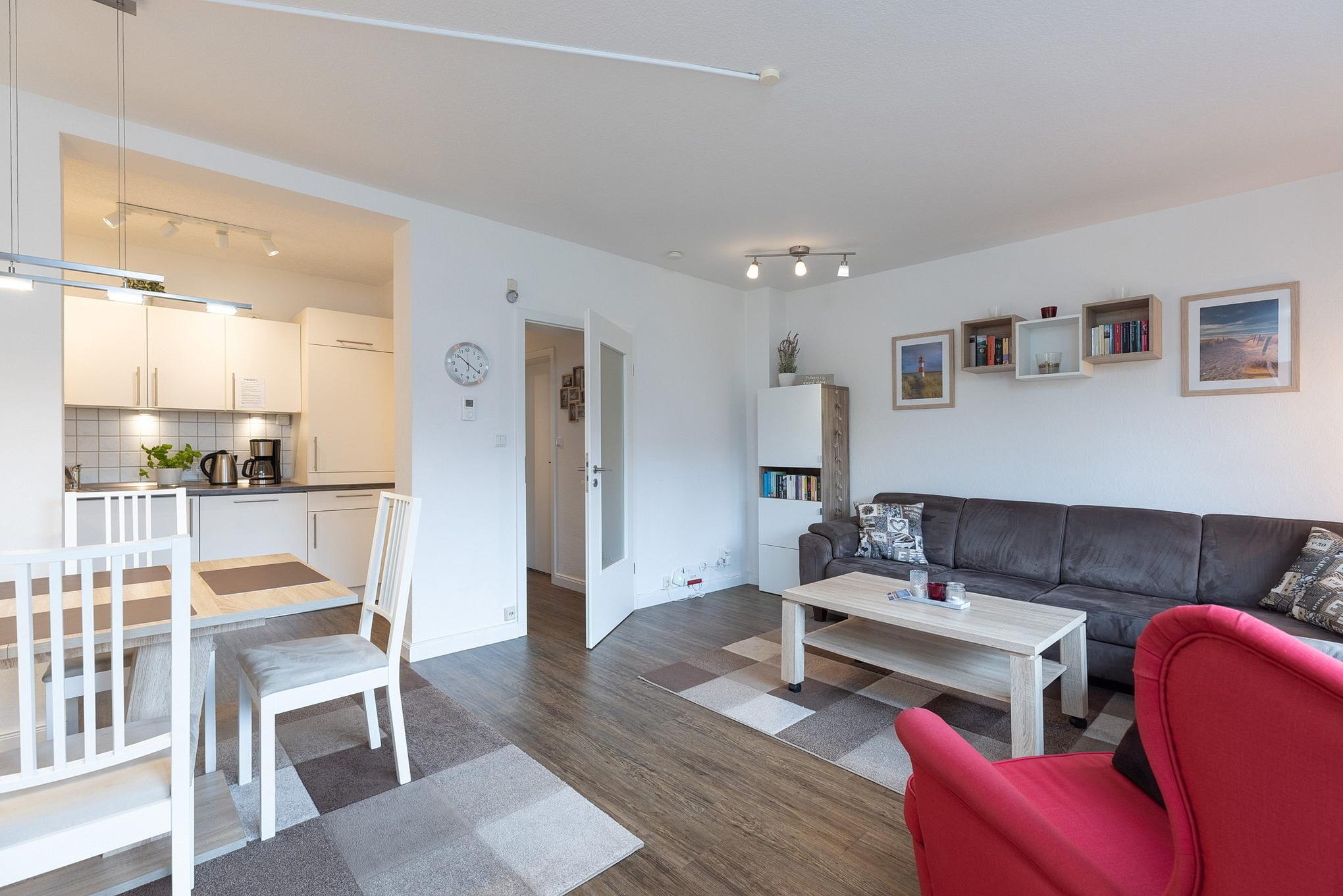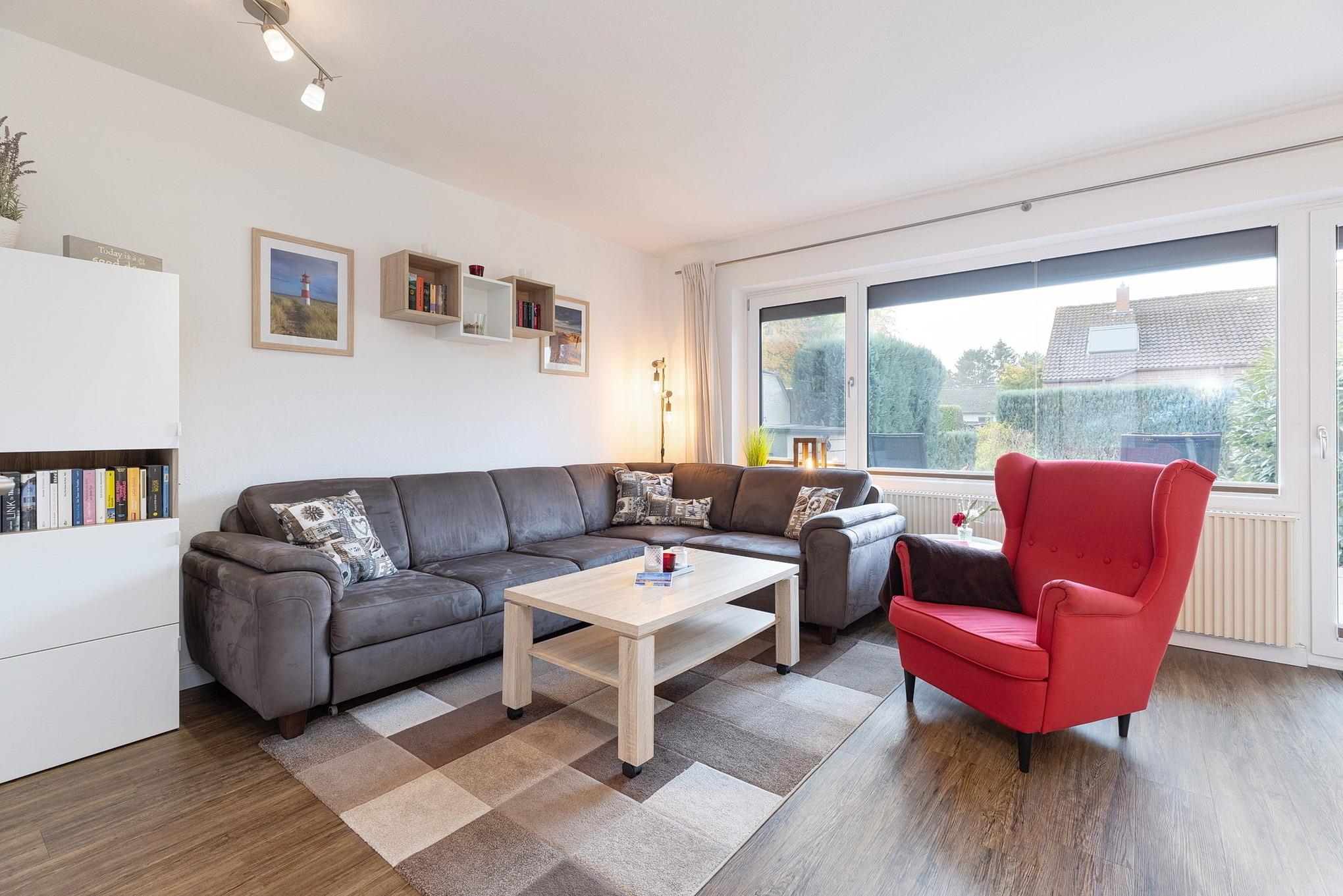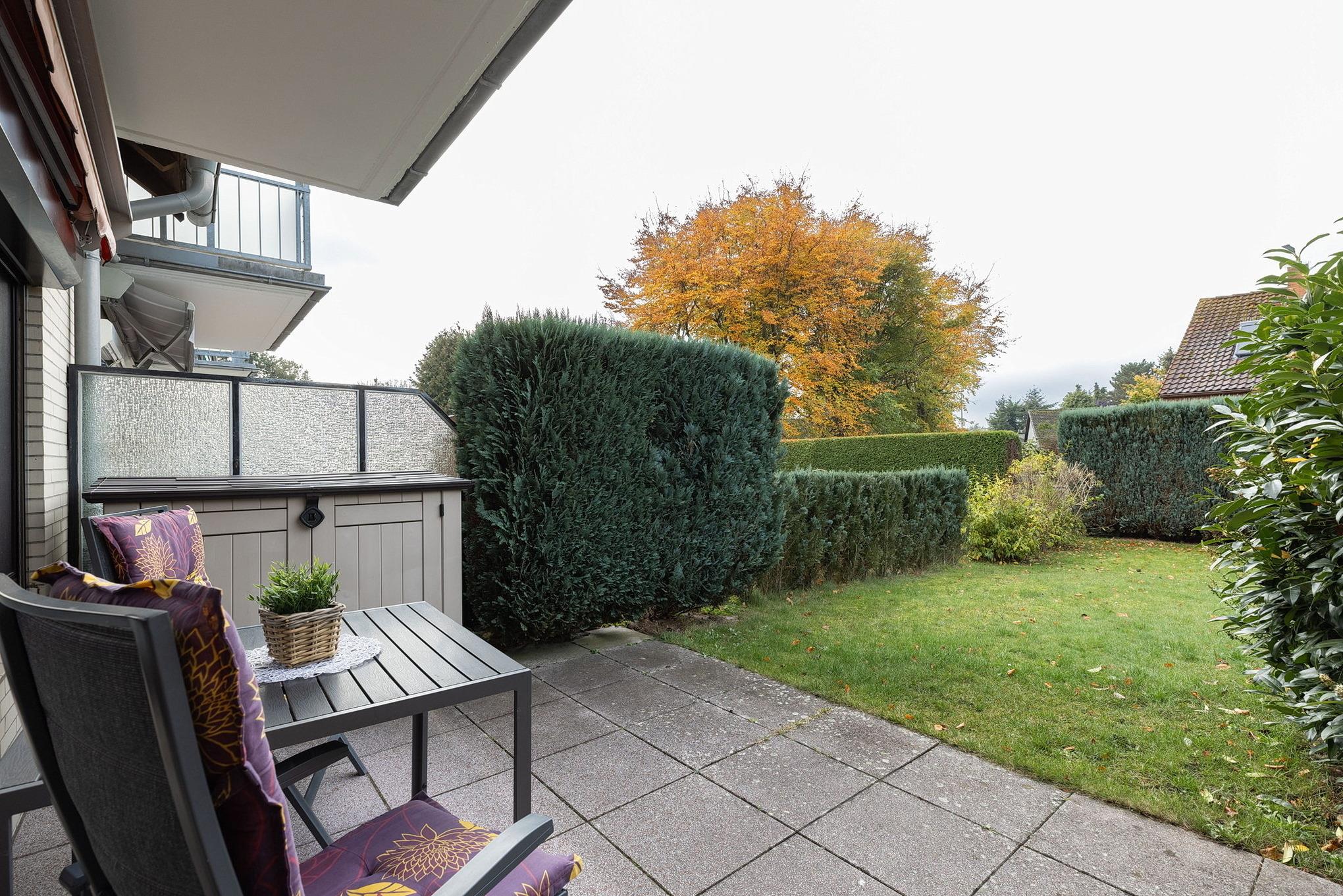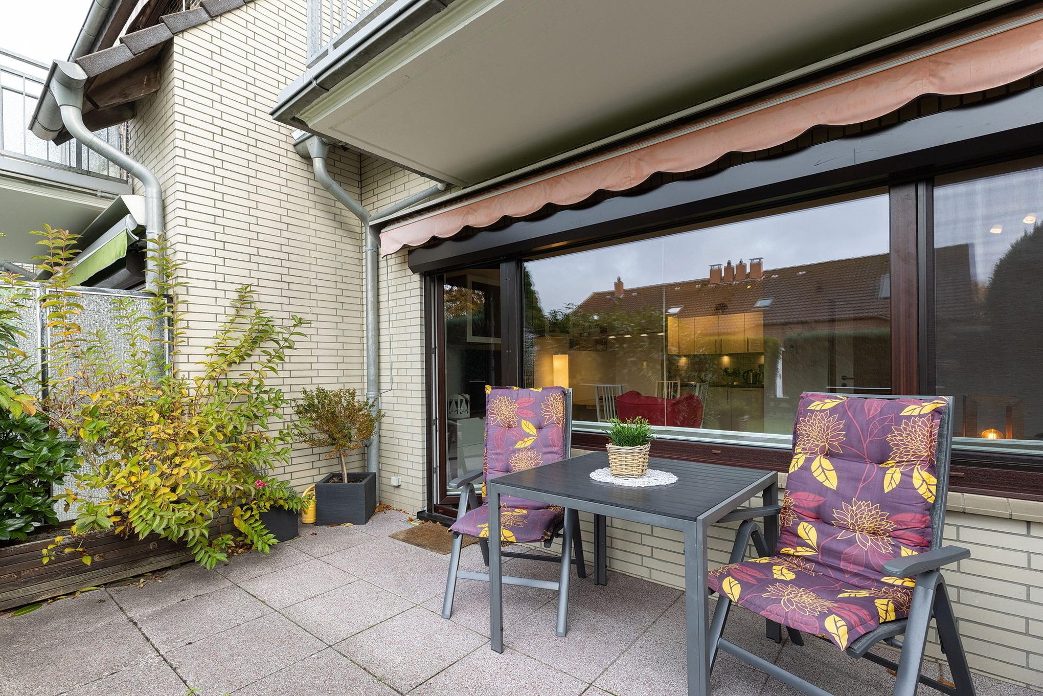 Die EG-Wohnung befindet sich in ruhiger Lage in einem gepflegten Reihenmittelhaus nur wenige Gehminuten vom Strand und dem nächsten Supermarkt entfernt.