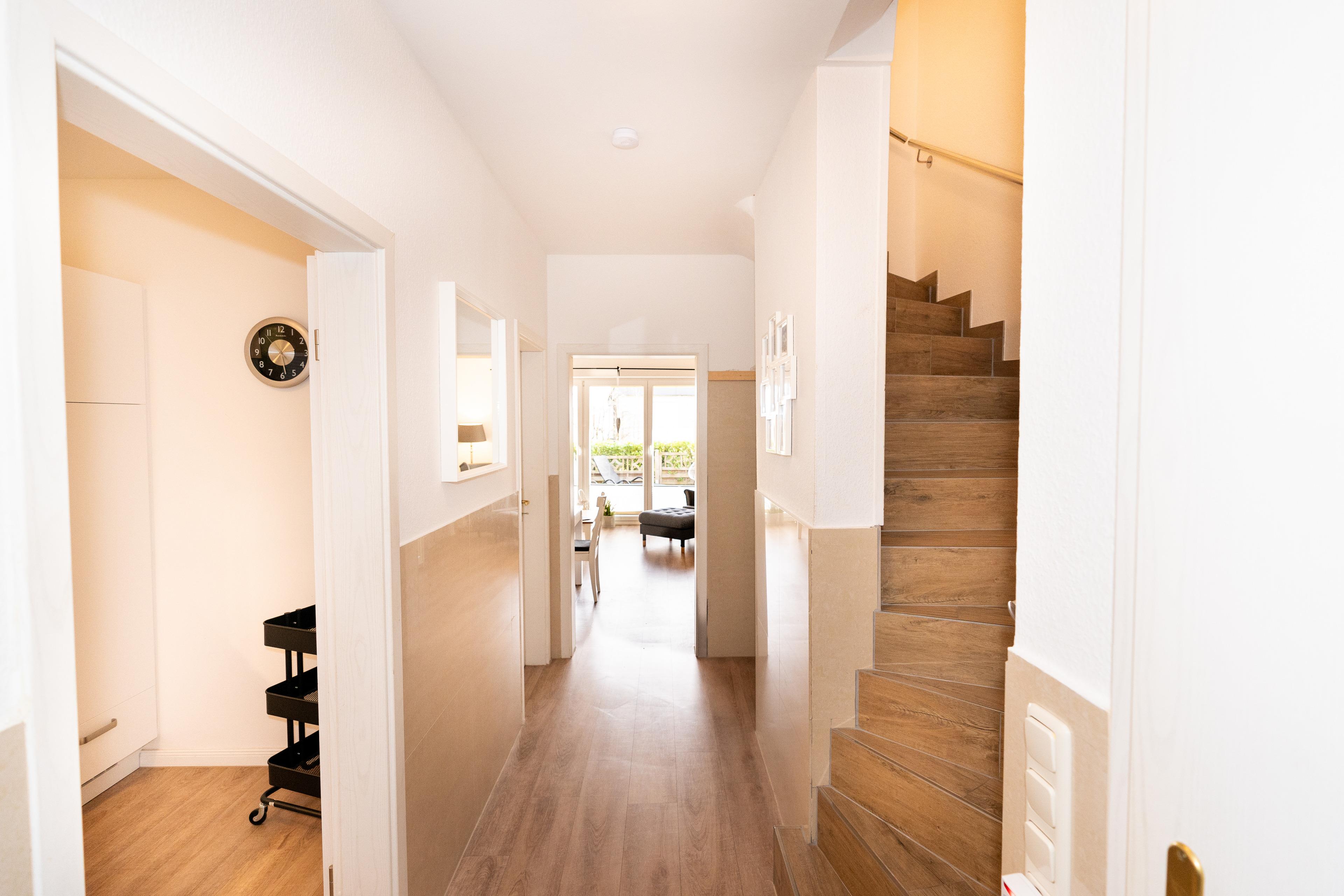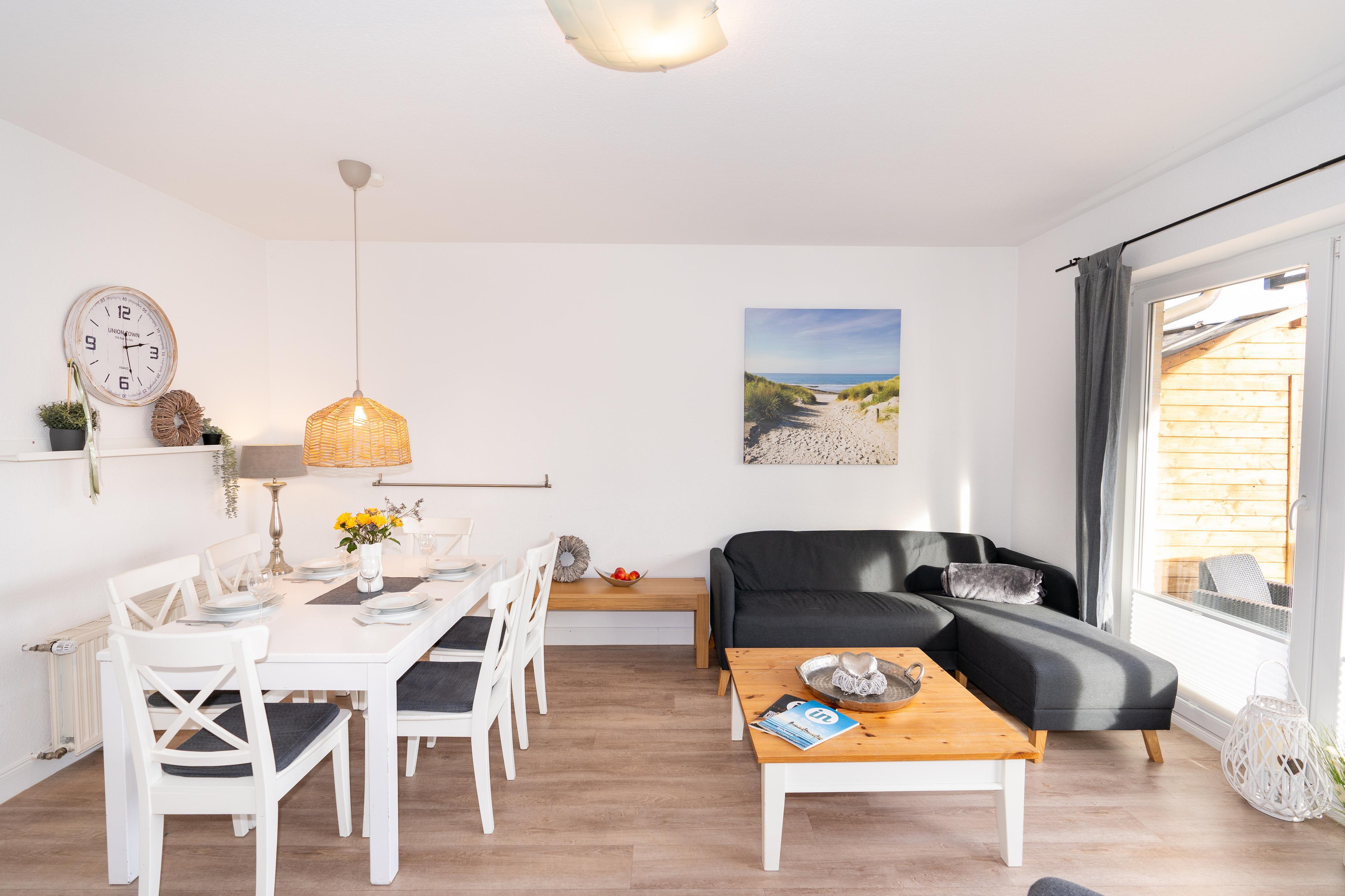 Im Erdgeschoss finden Sie ein Gäste-WC, eine geräumige Küche sowie ein stilvoll eingerichtetes Wohnzimmer mit einem Flat-TV und einer großen Wohnlandschaft, die zu entspannten Abenden einlädt. Von hier aus gelangen Sie auf die blickgeschützte Terrasse, die mit einer Markise und einem Grill ausgestattet ist. Hier können Sie entspannte Grillabende verbringen und die frische Seeluft genießen. Besonders familienfreundlich ist das 1. Obergeschoss, welches mit 2 Schlafzimmern ausgestattet ist (1 Doppelbett 2x100x200 cm, 2 Einzelbetten je 100x200 cm) sowie einem Badezimmer mit Dusche und WC und einem weiteren Bad mit Dusche, das den Gästen viel Platz und Komfort bietet. Im 2. Obergeschoss gibt es eine zusätzliche Schlafmöglichkeit (140x200 cm) mit eigenem Gäste-WC und saisonal eingeschränktem Ostsee-Fernblick.