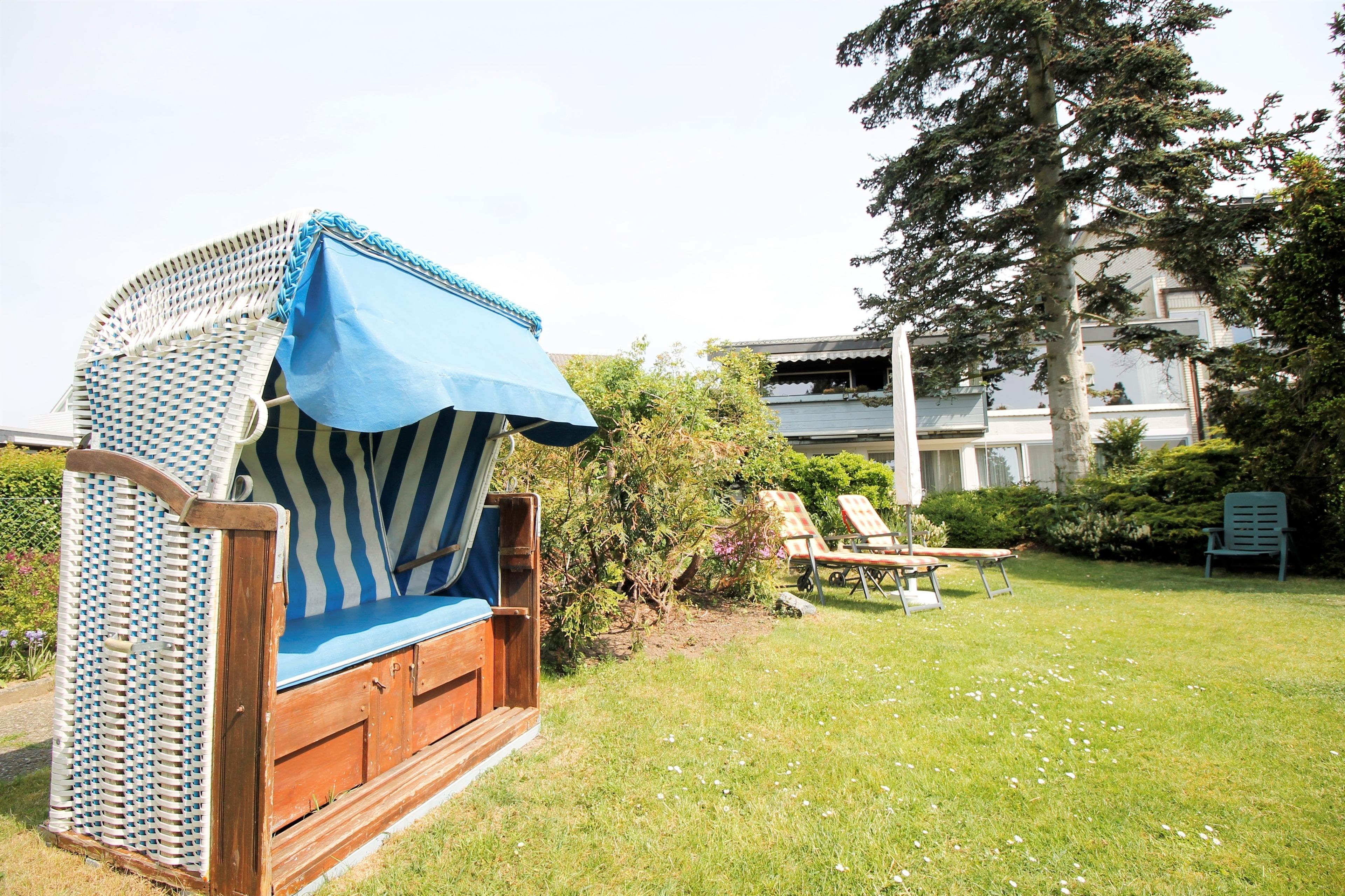 Ein Strandkorb in der 2. Reihe kann auf Wunsch für 50,00 € pro Woche gemietet werden. Reservierung ist bei Buchung erforderlich.