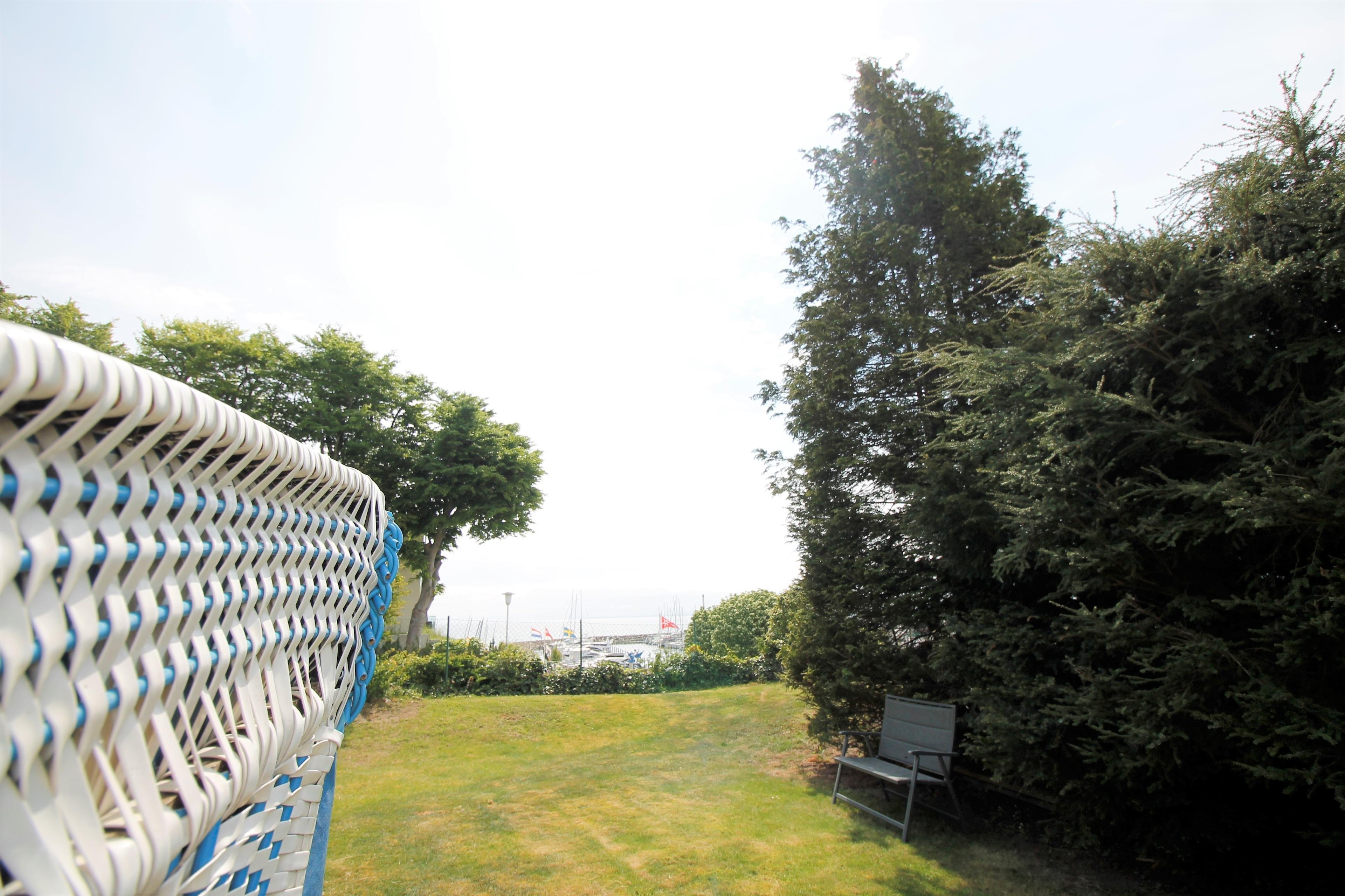 An schönen Sommerabenden können Sie die 30 m² große teilweise überdachte Terrassein Südwest Richtung für Grillabende nutzen. Liegestühle und ein Strandkorb bieten sogar Blick auf die Ostsee und den maritimen Yachthafen.