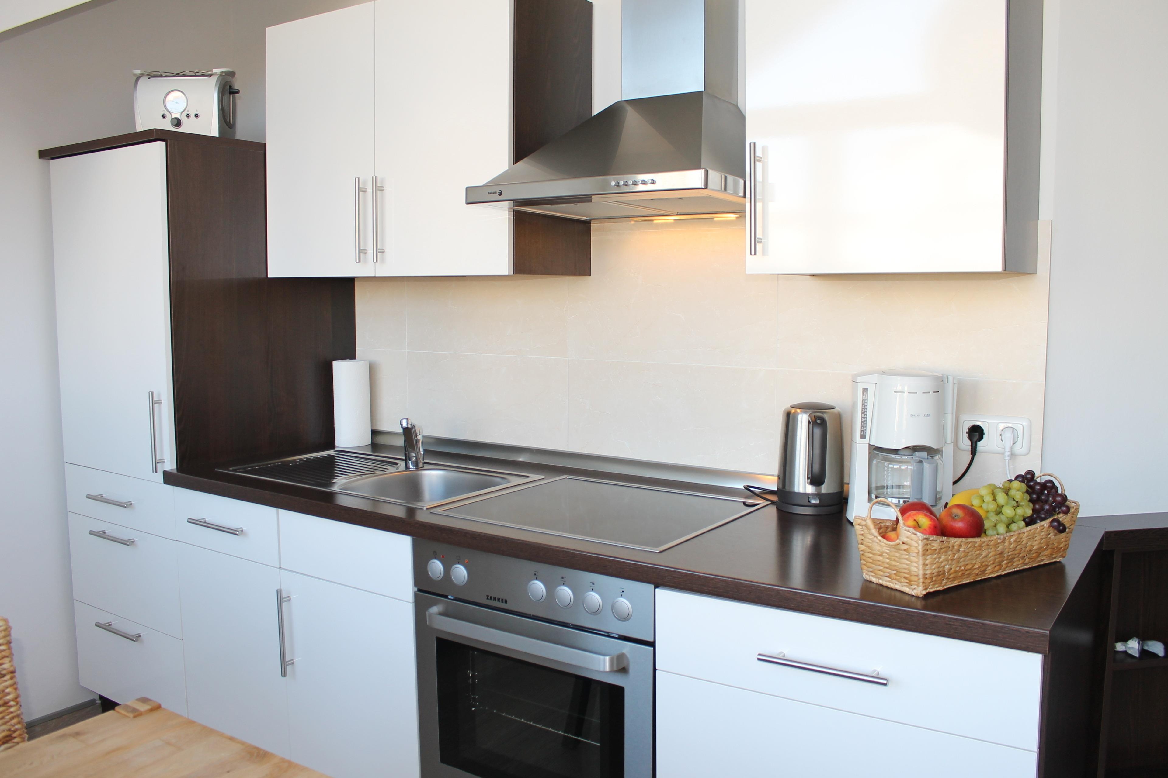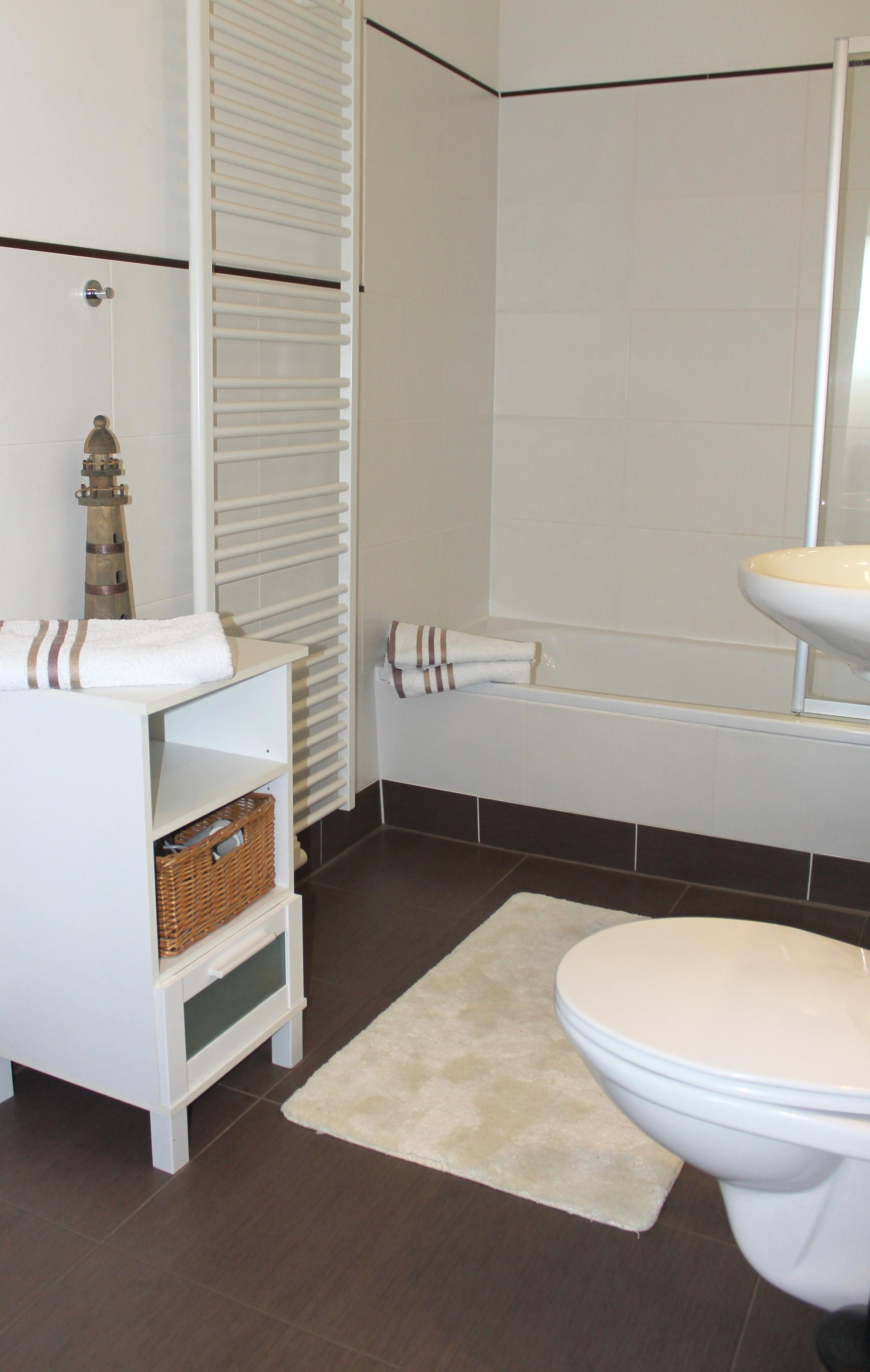 Die integrierte Küchenzeile ist u.a. mit einer Geschirrspülmaschine, einem Backofen, einer Waschmaschine und vielen weiteren Küchengeräten wie z.B. einer Kaffeemaschine, einem Toaster und einem Wasserkocher ausgestattet. Ebenso befindet sich hier ein Essplatz für vier Personen. Direkt an die Küche grenzt die Dachterrasse, von hier aus können Sie schon morgens die herrliche Ostseeluft genießen. Das separate Schlafzimmer ist mit einem Doppelbett (Maße - 1,80 m x 2 m - getrennte Matratzen) und einem großen Kleiderschrank versehen, ein kleiner Abstellraum steht Ihnen hier zur Verfügung.) Das Badezimmer ist voll ausgestattet mit einer Badewanne mit Duschfunktion, einem großen Spiegel, einer Handtuchheizung sowie Waschbecken / WC.