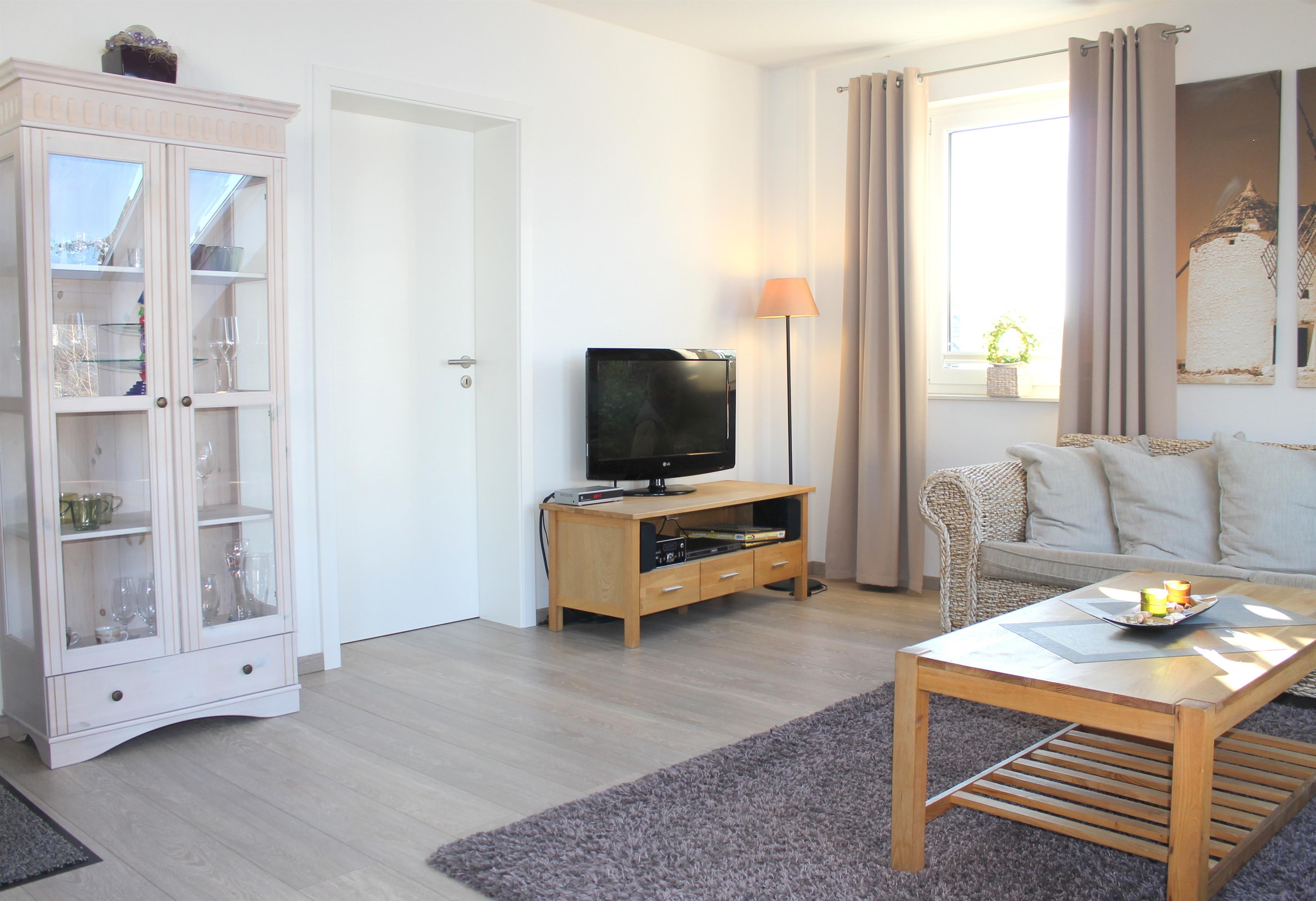Der helle Wohnraum lädt im Winter sowie im Sommer zum Verweilen ein. Ob im Sommer im Strandkorb auf der großen Dachterrasse oder im Winter im Strandkorb im Wohnzimmer - Ostseeurlaub im Strandkorb ist hier 365 Tage möglich.