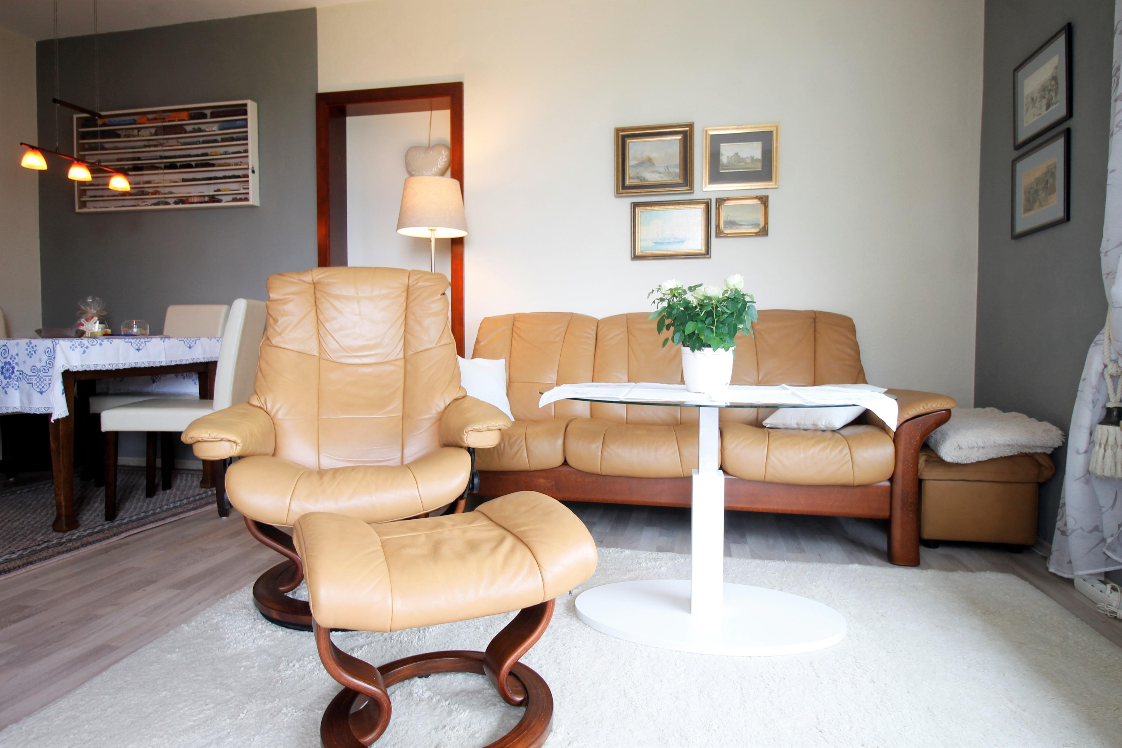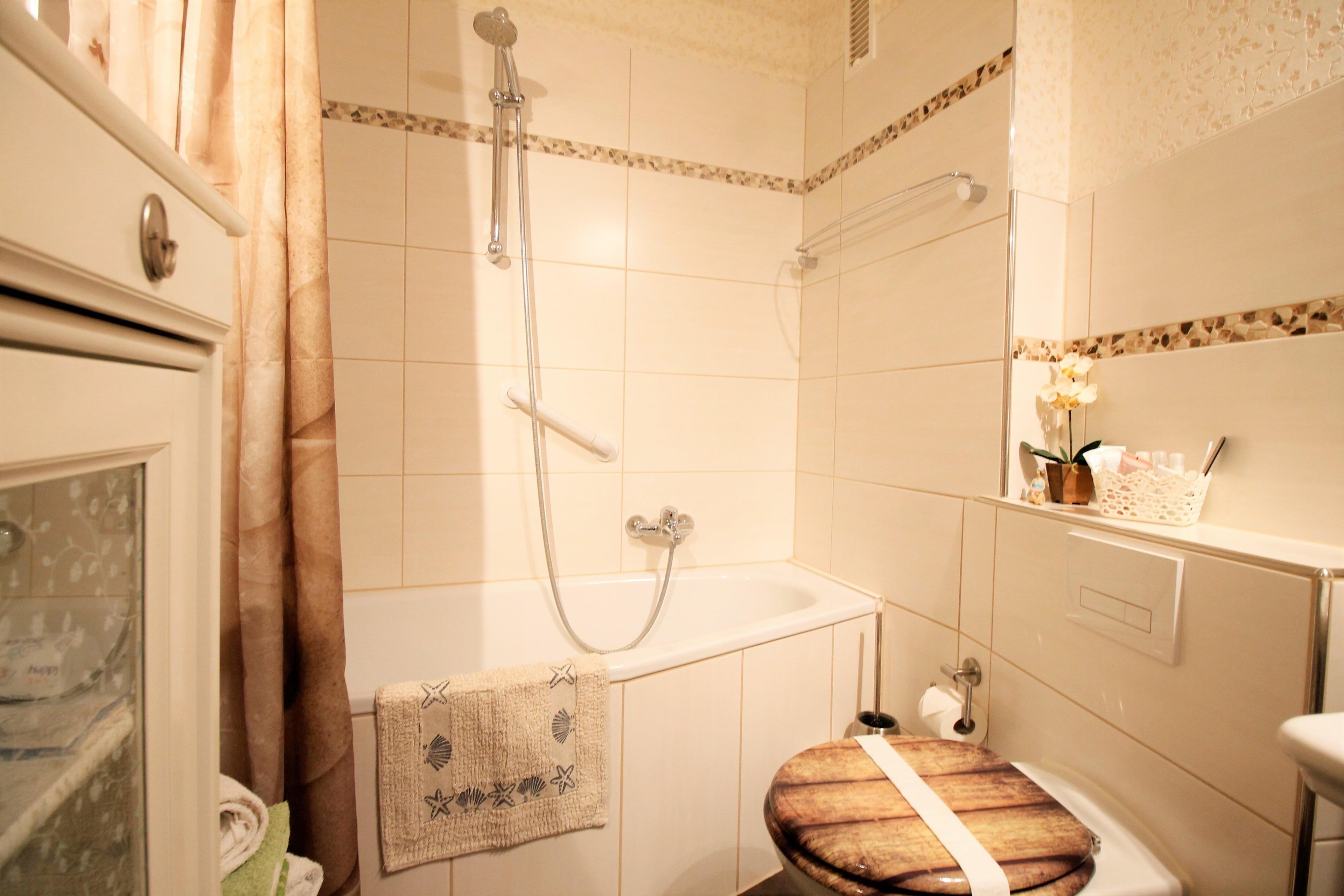 Die 2-Zimmer-Ferienwohnung ist ca. 49 m², im 5. Stock mit Balkon in Südostlage. Die Wohnung besteht aus einem Wohnzimmer mit Meerblick und mit Essbereich (ein großer TV, sowie eine Stereoanlage, große Anzahl von Büchern und div. Spiele sind vorhanden), einem Schlafzimmer mit Doppelbett (180 x 200 cm - getrennte Matratzen) und großem Kleiderschrank, sowie einem Bad mit Badewanne/Duschmöglichkeit und WC. Die Couch im Wohnzimmer (oder Zusatzbett) bietet Platz für eine weitere Person. Die Küche ist durch einen offenen Durchgang vom Wohnzimmer zugänglich. Sie verfügt über ein Ceranfeld (4 Kochstellen), Geschirrspüler, Mini-Backofen, Mikrowelle, Kühlschrank mit Gefrierfach, Toaster, Wasserkocher, Kaffeekapselmaschine, Kaffeemaschine, Eierkocher, Waffeleisen, hochwertiges Kochgeschirr und Mixer.