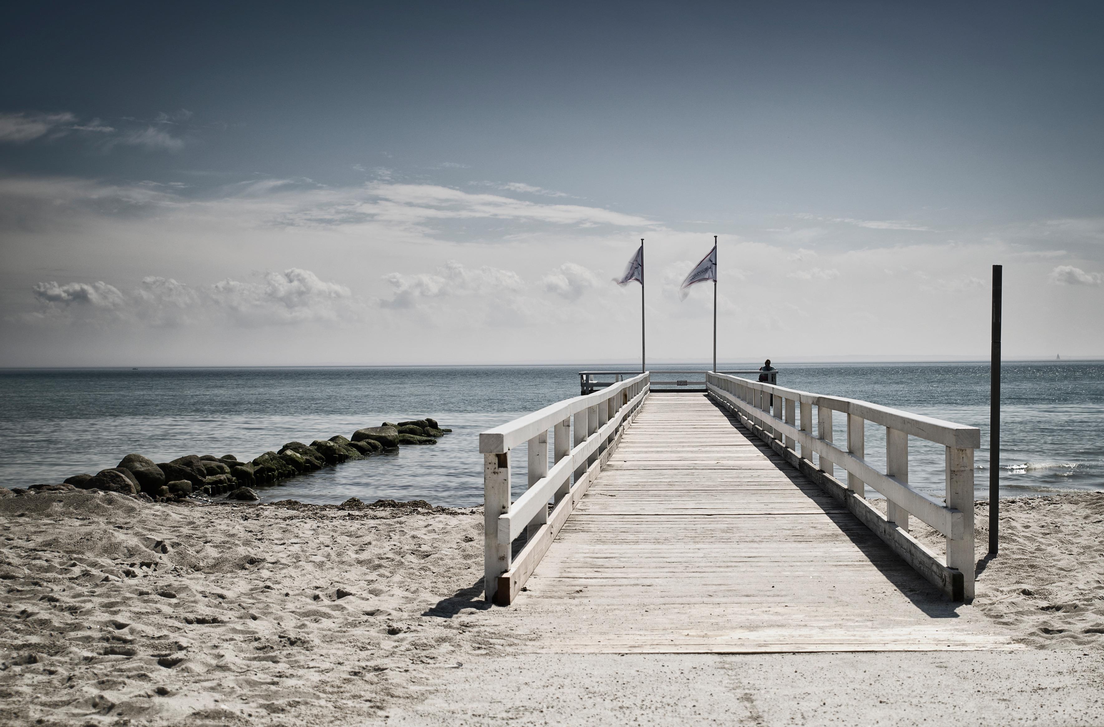 Den Blick auf das Meer gerichtet und der Sonne entgegen befinden Sie sich nach wenigen Schritten (max. 4 Gehminuten) direkt am feinsandigen Ostseestrand und der wunderschönen fast endlos langen Promenade von Grömitz. Hier wartet auf Sie ein eigener Strandkorb (Höhe Falkenthal Seafood-Restaurant).