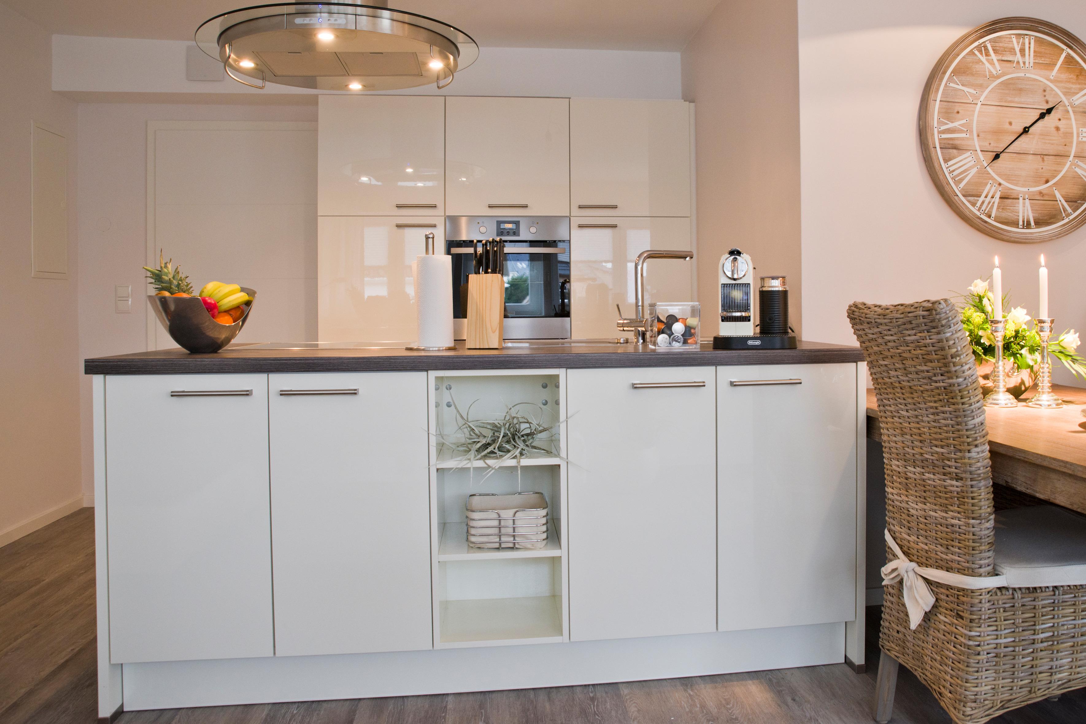 Die helle und modern eingerichtete Küche lässt keine Wünsche offen und ist mit jeglichem Komfort ausgestattet: Geschirrspüler, Mikrowelle, 4-Zonen-Ceranfeld, Dunstabzug, Backofen, Kaffeemaschine, Toaster, Mixer, Eierkocher, Fissler-Kochtöpfe, Wasserkocher, exklusives Porzellan (für 12 Personen), 60-teiliges Besteck, Salz- und Pfeffermühle. Ein Nespresso-Kaffeeautomat (Citiz & Milk) verwöhnt Geniesser neben der herkömmlichen Kaffeemaschine mit leckerem Crème Café, Cappuccino, Latte Macchiato etc. Zudem bietet die große Küche viel Aufbewahr - und Lagerungsplatz für Ihre Einkäufe. Alle Reinigungsutensilien stehen kostenlos zur Verfügung. Fußbodenheizung, Design-Holzbodenbelag.