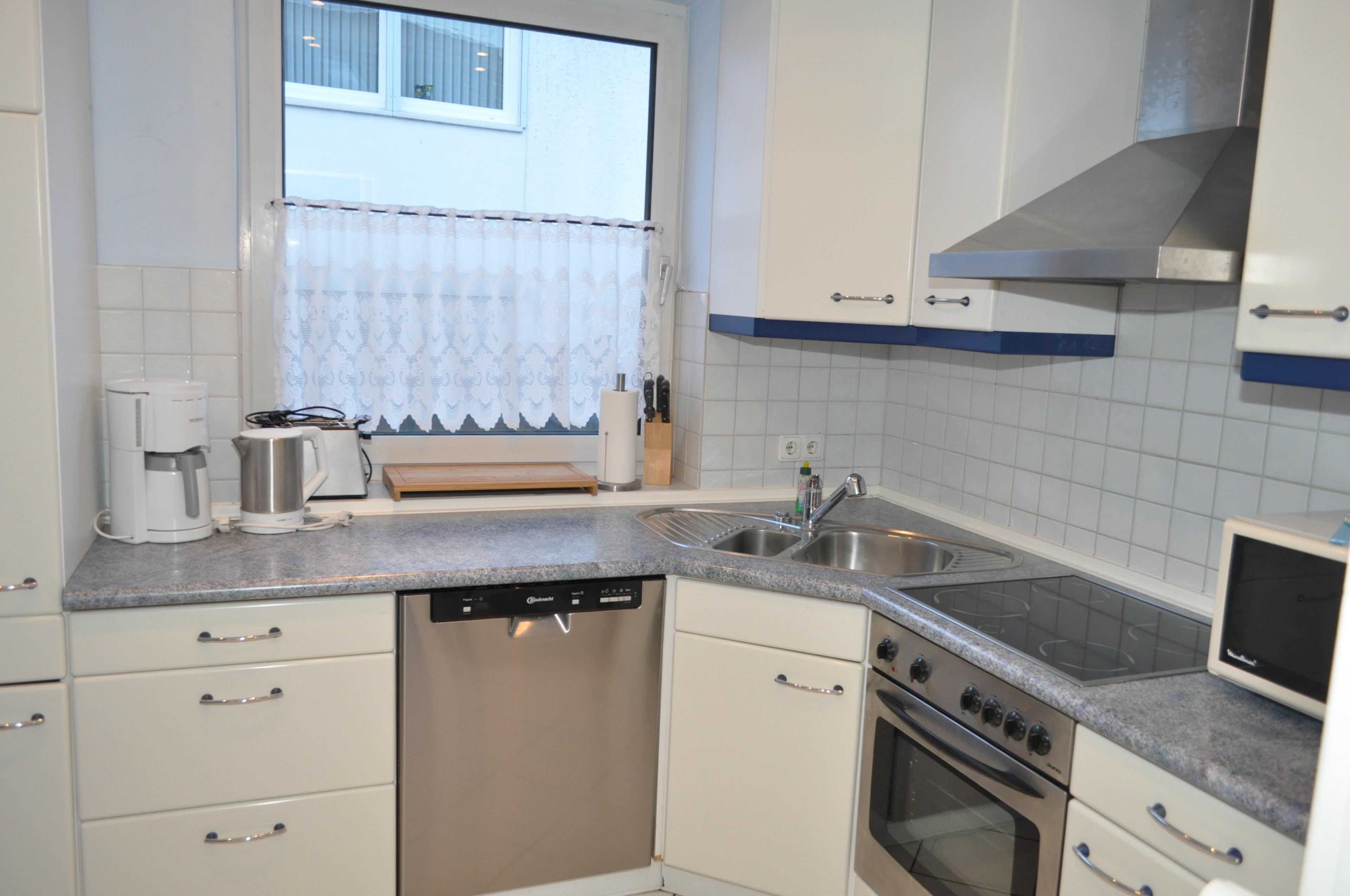 Unsere Nichtraucher-Ferienwohnung-Nr. 4 im Erdgeschoss bietet auf 75 m² modernes, helles und freundliches Ambiente. Die Wohnung besteht aus einem Wohnzimmer mit Sat-TV, einer großen Terrasse, einer separaten Küche mit Spülmaschine, Mikrowelle, Backofen und Wasserkocher, Dusche/WC und zwei Schlafzimmern mit Doppelbetten (1,80 x 2,00 m).