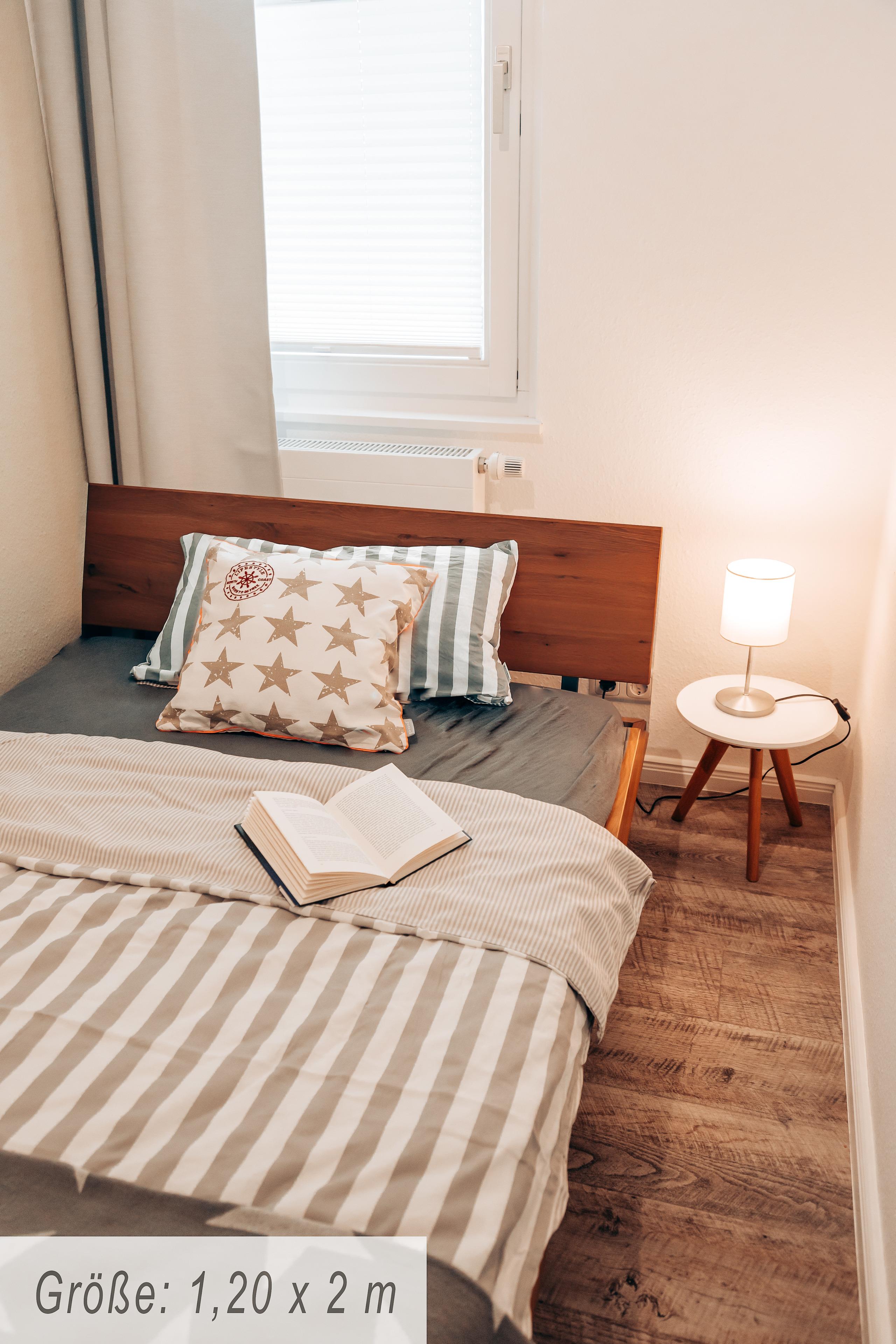 Die Wohnfläche der ca. 52 m² großen Ferienunterkunft verteilt sich auf ein Wohn- / Esszimmer mit integrierter Küche, zwei separate Schlafzimmer sowie auf einen kleinen Flur und ein Badezimmer und bietet Platz für max. 3 Personen. Der Wohnbereich ist mit einer gemütlichen Couch sowie einem Essplatz versehen. Vom Wohnzimmer gelangen Sie auf den möblierten Balkon, Sie genießen einen herrlichen Blick auf die Grömitzer Seebrücke und können hier morgens in der Sonne frühstücken. Die Küche ist u.a. mit: Kühlschrank, Spülmaschine, 4-Platten-Herd, Backofen, Kaffeemaschine und weiteren Küchengeräten ausgestattet. Eines der beiden separaten Schlafzimmer ist mit einem Doppelbett (getrennte Matratzen, Maße: 1,80 x 2,00 m) versehen. Im Flur der Wohnung steht für Sie ein Kleiderschrank bereit. Das zweite Schlafzimmer verfügt über ein Bett (1,20 m x 2 m). Das Badezimmer verfügt über eine Walk-in-Dusche, WC.