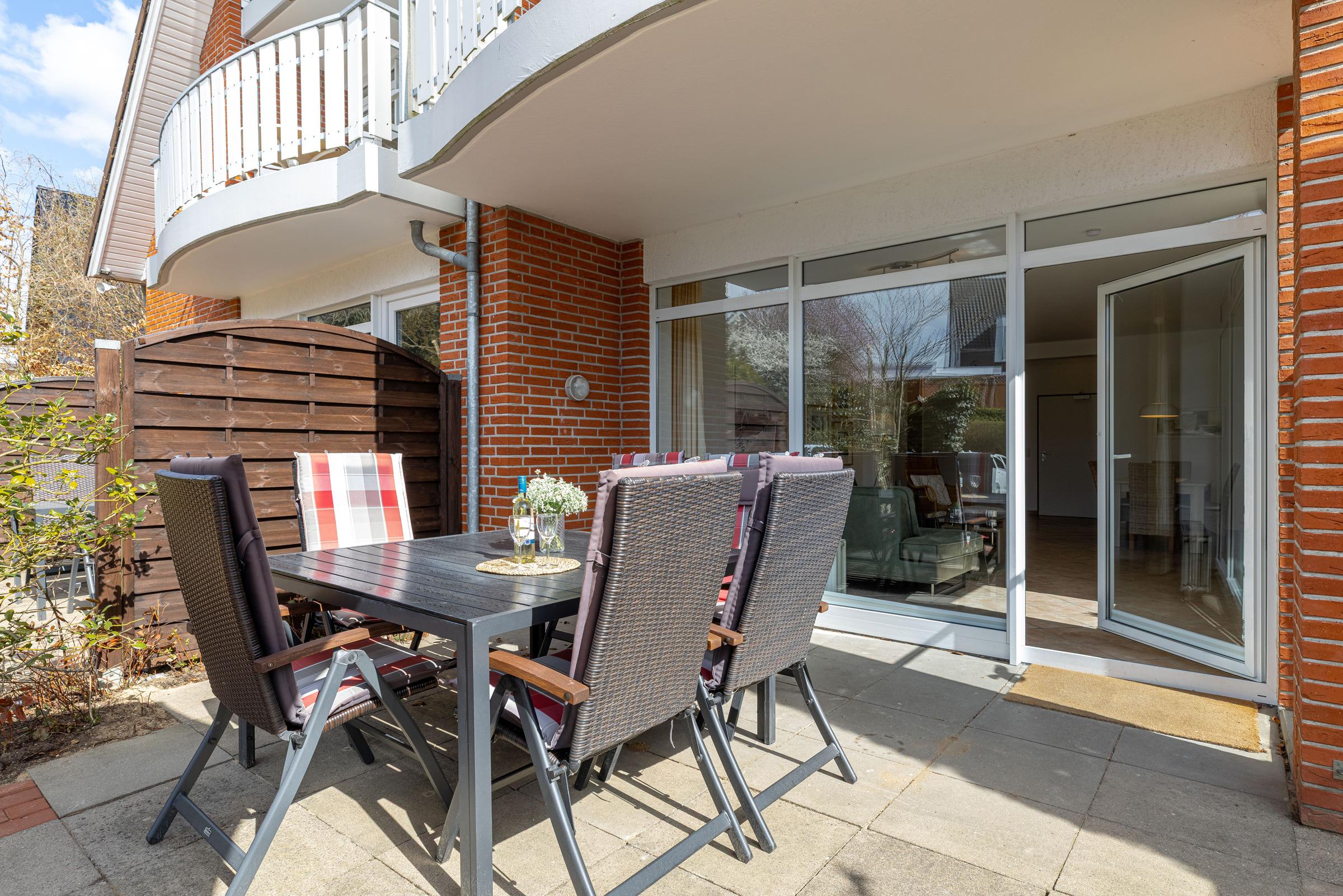 Komfort-Wohnung (2025) für bis zu 6 Personen mit 3 Schlafzimmern und 94 m² Wohnfläche in zentraler und strandnaher Lage (200 m zum Kurzentrum und Hauptstrand) sowie 2 PKW-Stellplätzen.