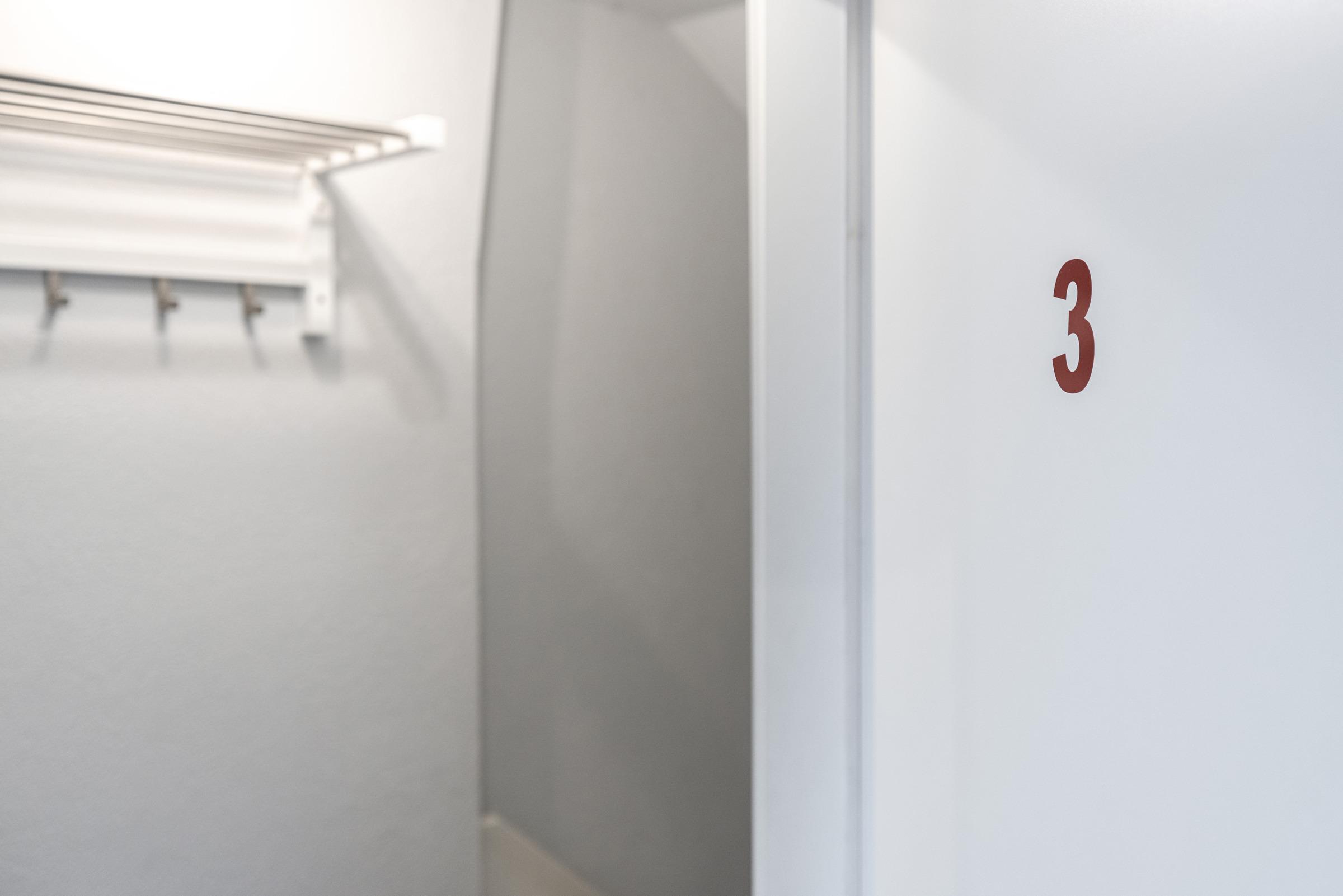 Der Fußboden ist neu und hygienisch mit Design-Planken in sandfarbenem Holzdekor verlegt.