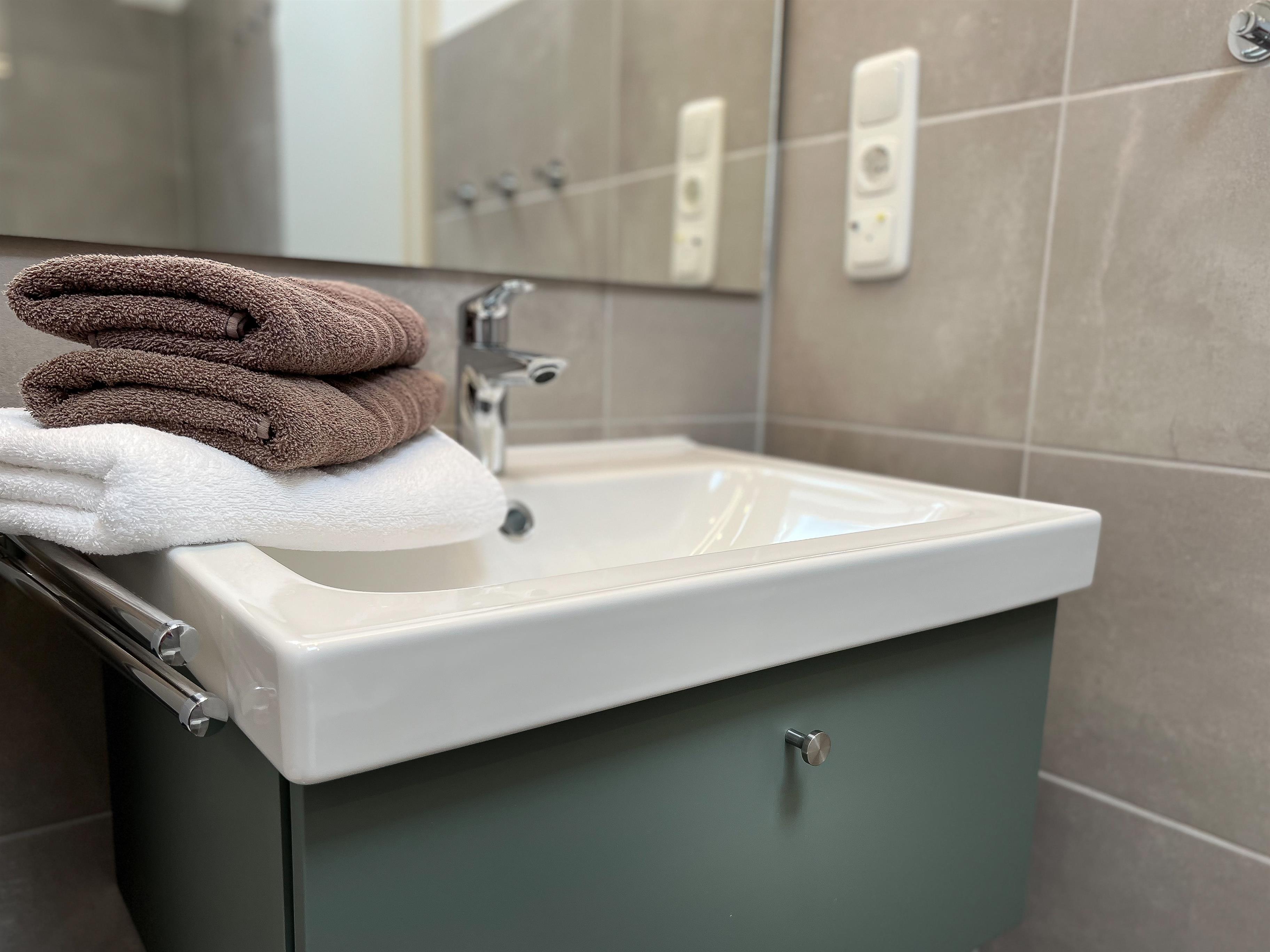 Keine Stufen, breite Türen, flache Dusche.