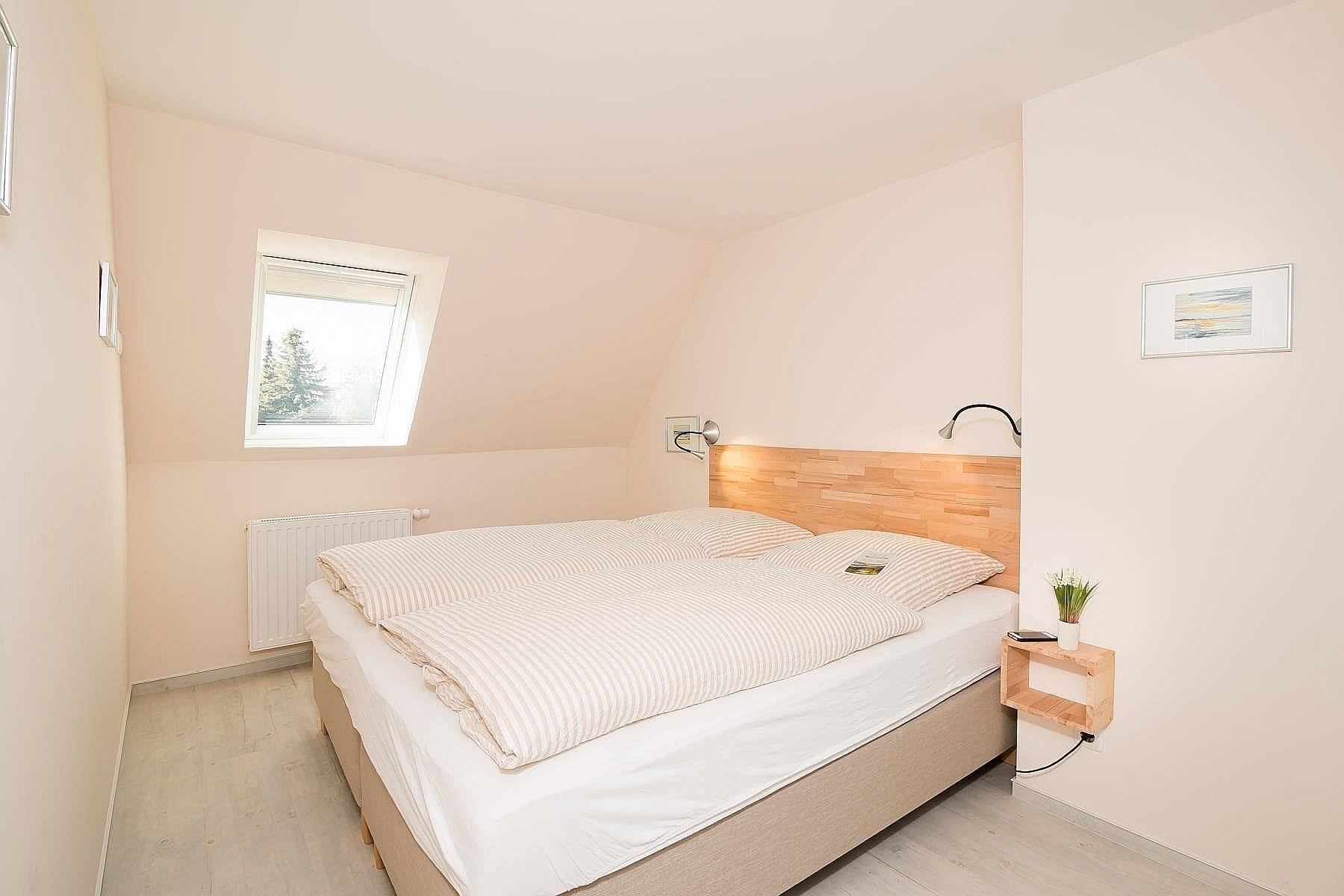 Mit Ostseeblick: Komfort-Apartment im 1. Obergeschoss für 2 bis 4 Personen mit 2 Schlafzimmern und 70 m² Wohnfläche in unmittelbarer Hauptstrand-Nähe (direkt am Deich, 100 m zur Promenade, 200 m zur Seebrücke).