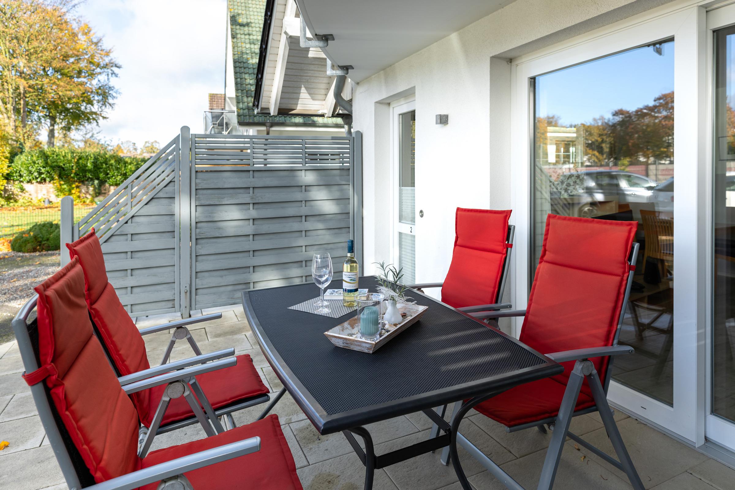 Komfort-Apartment für 2 bis 4 Personen mit 2 Schlafzimmern und 65 m² Wohnfläche in zentraler Lage unweit des Hauptstrandes (8 Gehminuten). PKW-Stellplatz am Haus. Strandkorb auf der Terrasse.
