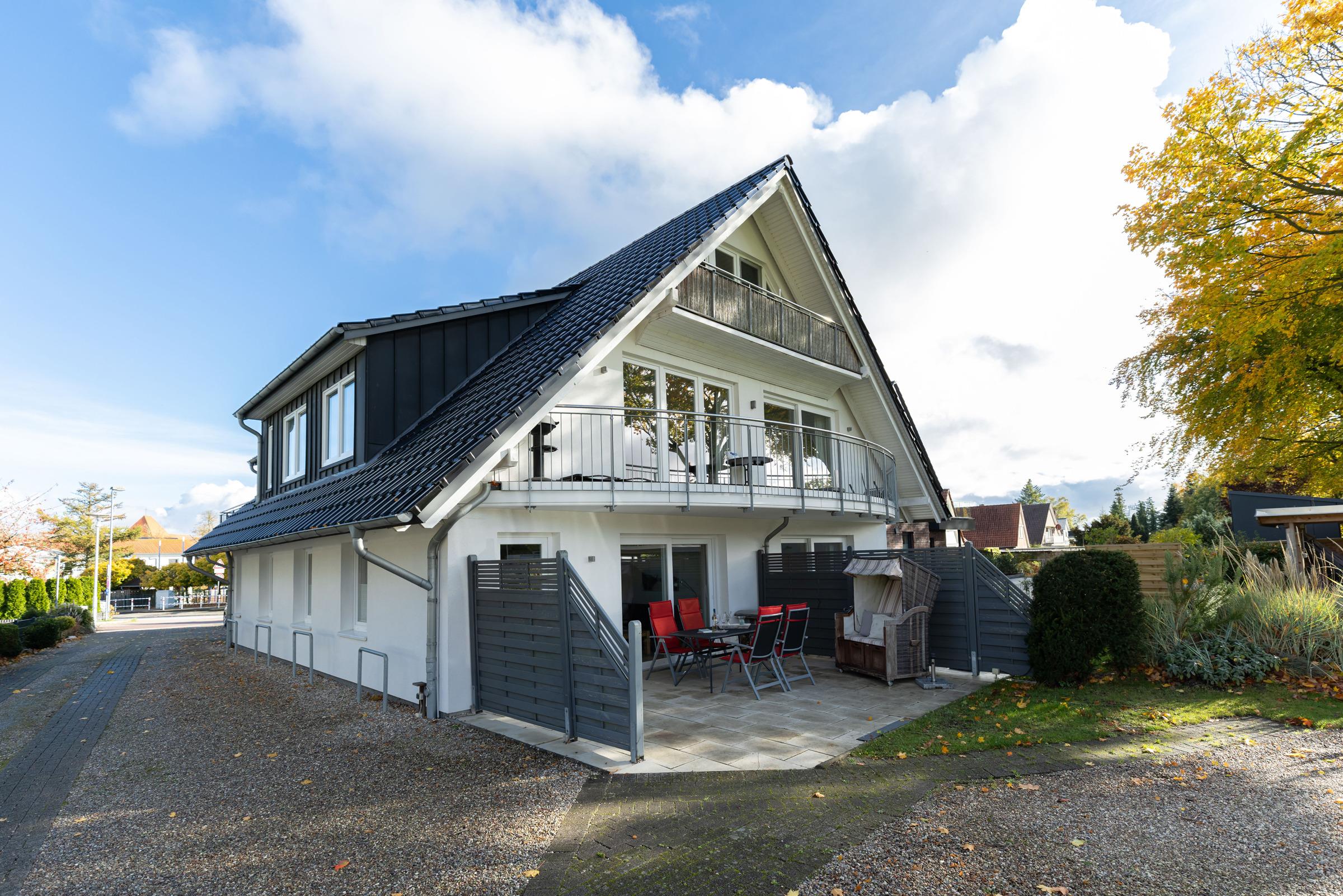 Im hinteren Bereich des beeindruckenden Ferienhauses sind die neuen Apartments angeordnet. Erleben Sie auf großzügigen Sonnen-Terrassen zur Süd- Westseite mit Strandkorb in absoluter Ruhe wohlverdiente Erholung.