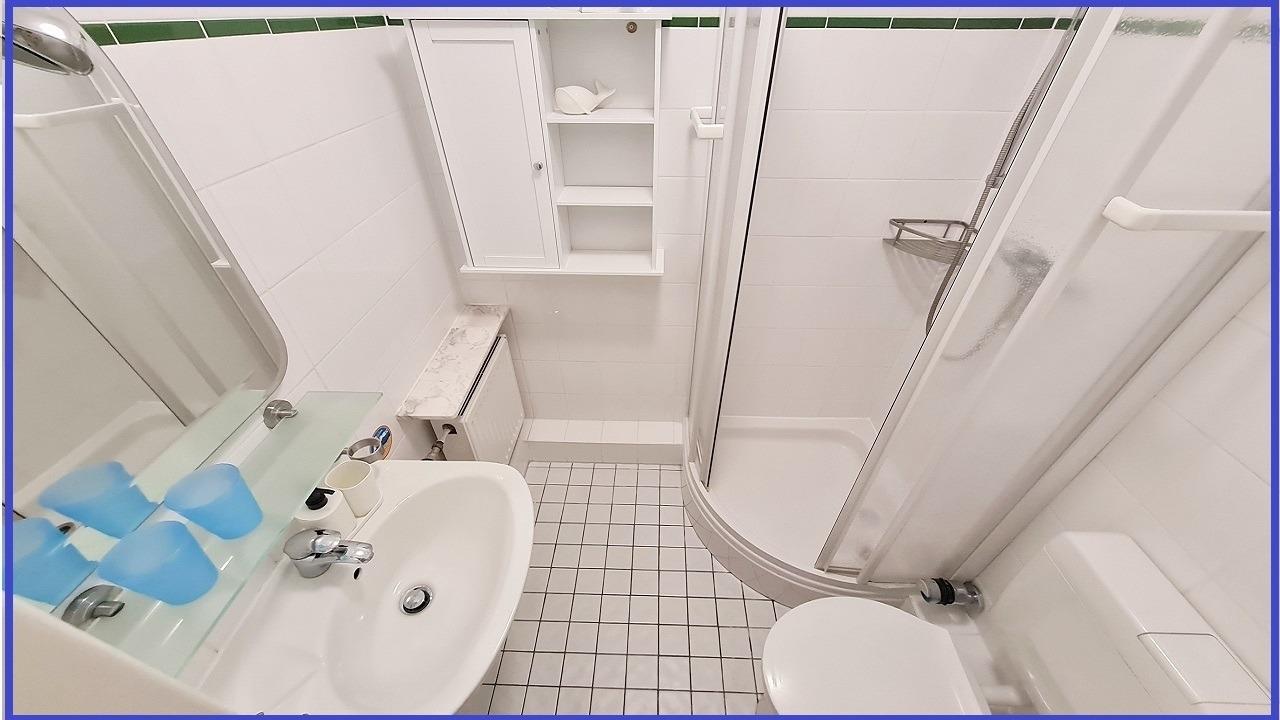 Die Wohnung liegt in der 2. Etage der Appartementanlage "Haus Baltic" und bietet ausreichend Platz für maximal 4 Personen. Die Gesamtfläche der ca. 49 m² (43 m² DIN) verteilt sich auf ein helles, sehr großzügiges Wohn-Ess-Zimmer, ein separates Schlafzimmer, eine separate Küche mit allem Komfort, ein helles Duschbad und einen Flur. Vom Flur aus gelangen Sie in das hell und freundlich eingerichtete Wohnzimmer mit einer Sitzecke (Schlafcouch von 1,40 x 2,00 m), sowie einem Essplatz für 4 Personen. Ein Flachbildfernseher (viele digitale Programme), ein CD-Player mit Radio, sowie ein W-Lan-Anschluss für den Internetzugang sind hier vorhanden. Es wurde natürlich auch daran gedacht, dass (falls es einmal regnet) für jeden eine Auswahl von CD's, Spiele und Bücher vorhanden sind. Vom Wohnzimmer aus haben Sie Zugang zum Süd-West-Balkon (ca. 7,5 m²), wo Sie bequem mit 4 Personen bis in den frühen Abend hinein die Sonne genießen können. Von hier haben Sie eine tolle Aussicht zum Deich mit einem unverbaubaren Blick in Richtung Ostsee. Die nagelneue Küche ist ausgestattet mit einem 4-Platten-Ceranfeld, einer Geschirrspülmaschine, einem Kühlschrank mit Gefrierfach, sowie einem Mikrowellengerät mit Grillfunktion. Natürlich sind auch diverse Küchengeräte, wie Kaffeemaschine, Eierkocher, Toaster, Wasserkocher, u.s.w. enthalten. Das separate Schlafzimmer ist mit einem Boxspringbett (1,40 x 2 m) für 2 Personen, 2 Nachttischchen, einem Kleiderschrank, sowie einem Herrendiener ausgestattet. Durch die vorhandenen Rollos kann es fast komplett abgedunkelt werden. Das Badezimmer ist zweckmäßig mit Dusche, WC und Waschtisch ausgestattet.