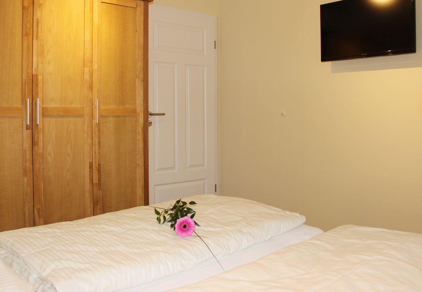 OG 1 Schlafzimmer mit Doppelbett, 2 Schlafzimmer mit je 2 zusammenstehenden Einzelbetten