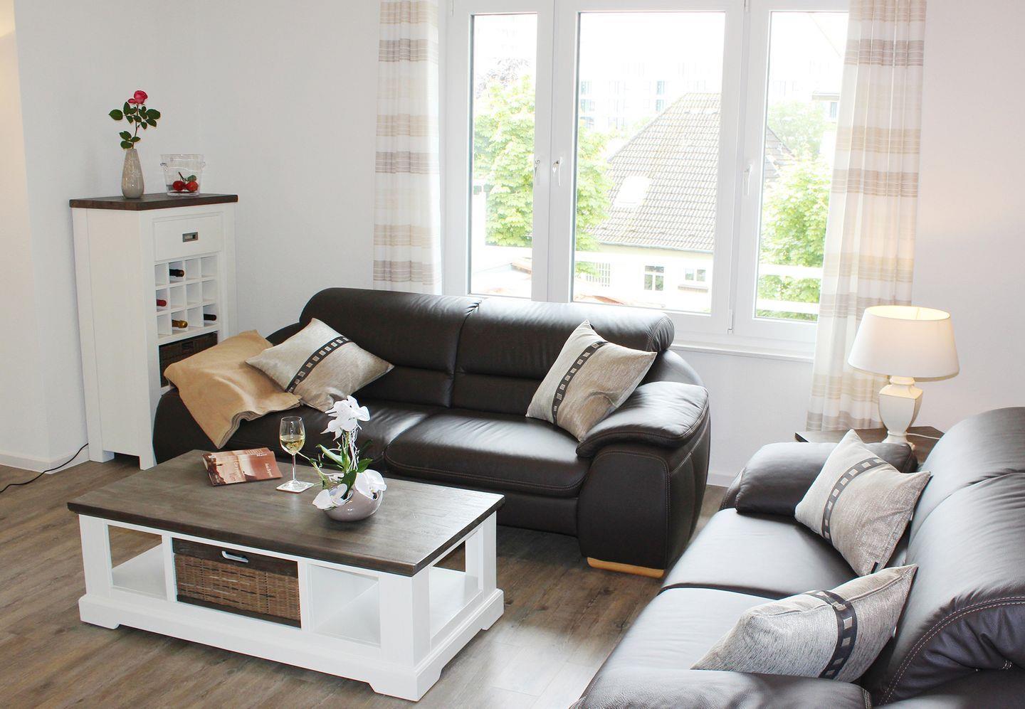 Der großzügige Wohn-, Ess- und Küchenbereich mit ausziehbarem Esstisch gehen harmonisch ineinander über. Die Einrichtung im Landhausstil wird Sie begeistern - die Camargue lässt grüßen! Zusätzlich ist der gesamte Wohn-Essbereich mit einem Audio-World-System ausgestattet. Des weiteren verfügt die geschmackvoll eingerichtete Wohnung über 2 Schlafzimmer, wobei eines mit einem Doppel-Boxspringbett ausgestattet ist. Die zwei Bäder sind hell und freundlich und lassen Sie in einen erholsamen Urlaubstag starten. Ihnen steht zusätzlich zur Verfügung: eine Waschmaschine und ein Trockner, Handtuchheizkörper, Wäscheständer, Bügelbrett und Bügeleisen, Staubsauger, Kinderhochstuhl und Reisebett, Carport für PKW, Abstellraum für Fahrräder. Eine Fußbodenheizung sorgt für wohlige Wärme an kalten Tagen. Ein kostenloser W-Lan Anschluss sowie ein Safe für Ihre Wertsachen sind vorhanden.
