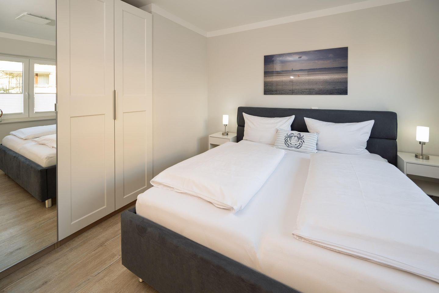 Die strandnahe Wohnung ist nach der Fertigstellung 2020 erstmals in der Vermietung und bietet einen tollen Blick auf die Ostsee! Sie ist buchbar für bis zu 3 Personen (der angegebene Preis bezieht sich immer auf 2 Erwachsene und 1 Kind) und es sind nur wenige Schritte zum Strand und zur Ostsee. Auf 79m² befinden sich zwei Schlafzimmer mit Doppelbetten (180x200cm) mit einem 50 Zoll Smart- TV, ein geräumiges Bad mit ebenerdiger Dusche und Sauna. Im Wohnzimmer erwartet Sie ein 50 Zoll Smart- TV, der Zugang zum großzügigen, möblierten Balkon in Südwest Lage und der herrliche Blick zur Ostsee. Zudem bieten wir Ihnen schnelles und kostenloses WLAN (bis zu 1.000 Mbit/s). Die Küche ist komplett ausgestattet und hat ein Bora Induktions-Kochfeldabzug zudem gibt es einen Essbereich. Ein separater Raum mit kostenfreier Nutzung von Waschmaschine und Trockner ist im Haus, außerdem ist ein Abstellraum vorhanden, ebenso ein PKW Stellplatz auch.