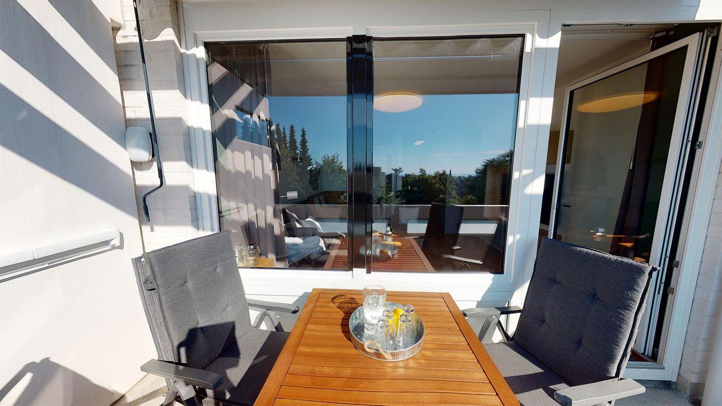 Genießen Sie die Sonne auf dem Balkon, der von einer Markise beschattet wird. Bequeme Balkonmöbel stehen für Sie bereit, und über die Baumkronen hinweg können Sie die Ostsee sehen!