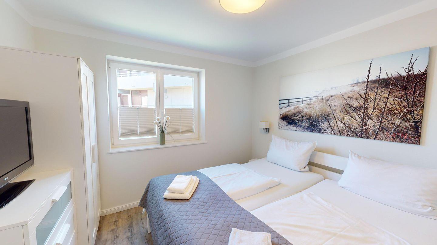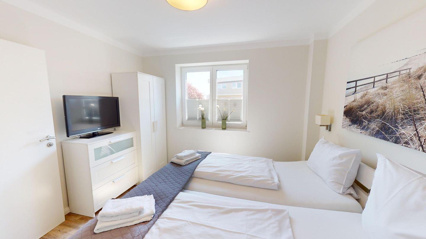 Drei Schlafzimmer mit gemütlichen Doppelbetten (2 x 2 m) und Verdunklungs-Plisses, zwei Duschbäder mit Regenduschen, das Wohnzimmer mit offener Küche und der große Eckbalkon zeichnen diese Wohnung aus.