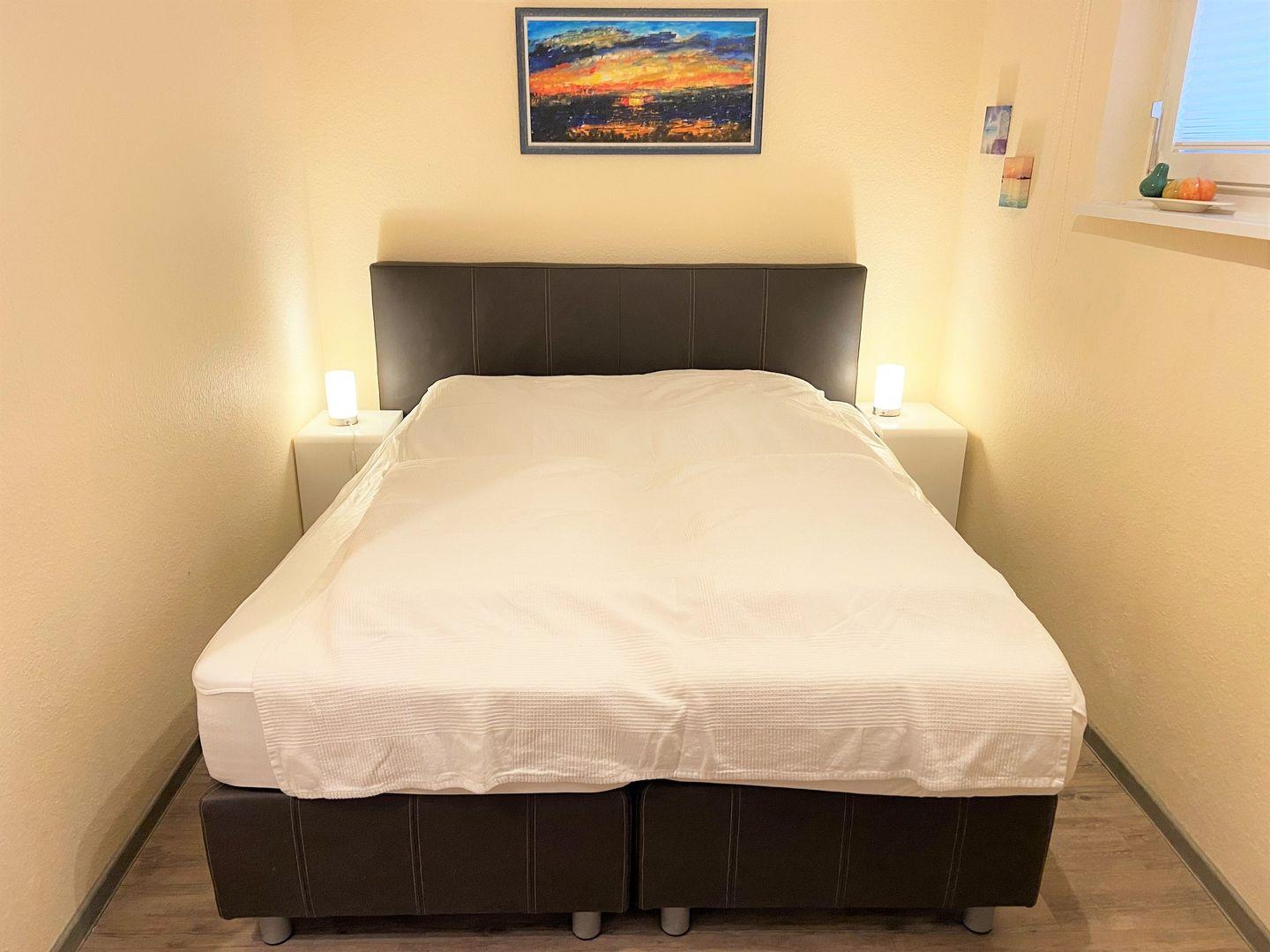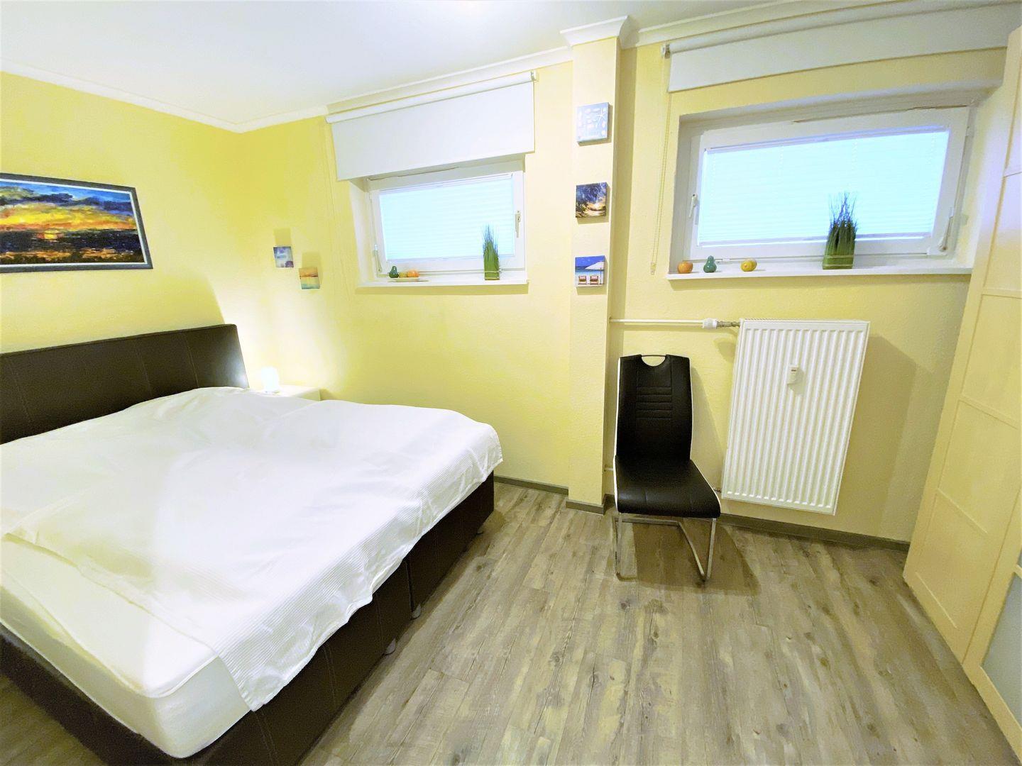Des weiteren verfügt das Schlafzimmer über ein Doppelbett (mit durchgehendem Topper 160cm) und einen Kleiderschrank.