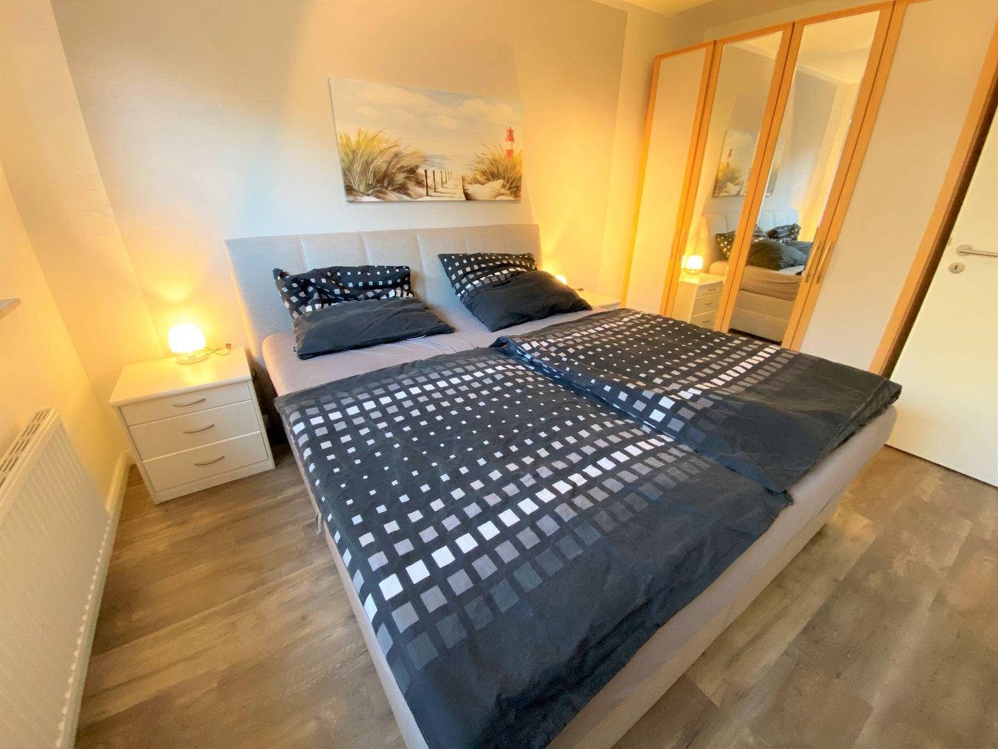 Es erwartet Sie zudem ein separates Schlafzimmer mit Boxspring-Bett zum ausschlafen und entspannen.