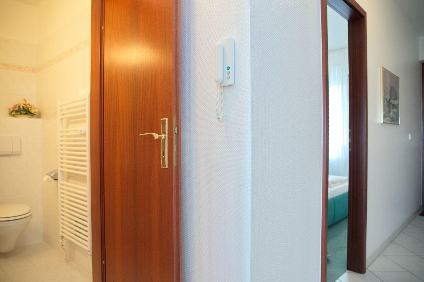 Das Badezimmer ist ein Duschbad mit WC und verfügt über einen Handtuchheizkörper für angenehme Wärme nach dem Duschen.
