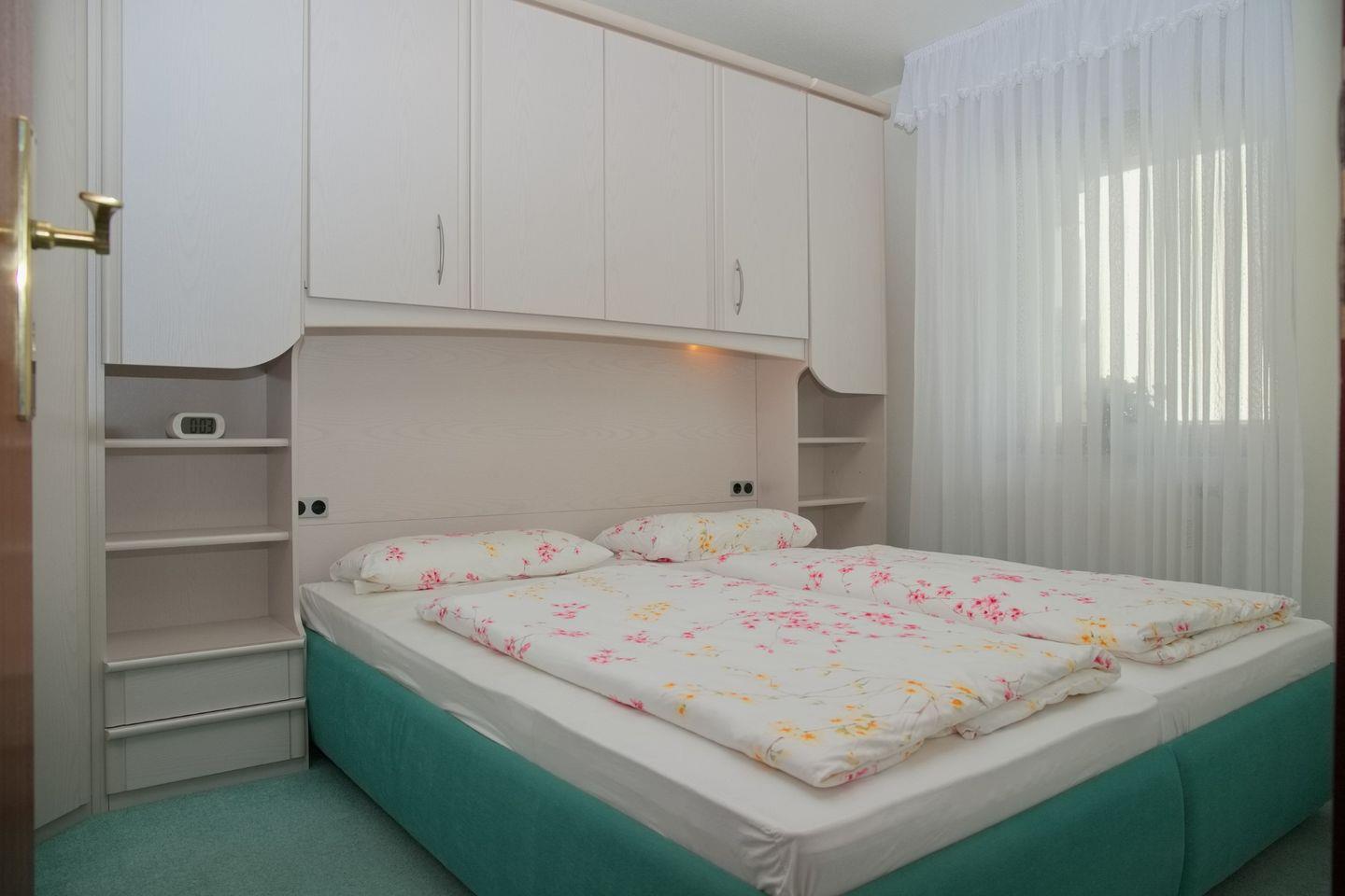 Das Schlafzimmer verfügt über ein komfortables Doppelbett, zwei Nachttische und einen geräumigen Kleiderschrank für Ihre persönlichen Gegenstände.