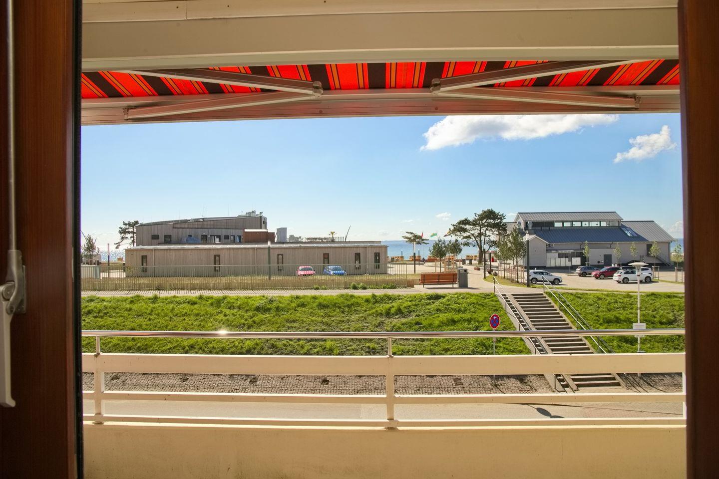 Willkommen in dieser gepflegten 2-Zimmer-Wohnung in der 2. Etage, die sich in einer begehrten Lage mit Blick auf das Meer befindet. Der möblierte Balkon in Südlage bietet einen herrlichen Ausblick und lädt zum Entspannen ein, während eine elektrische Markise Schatten spendet und den Aufenthalt noch angenehmer macht.