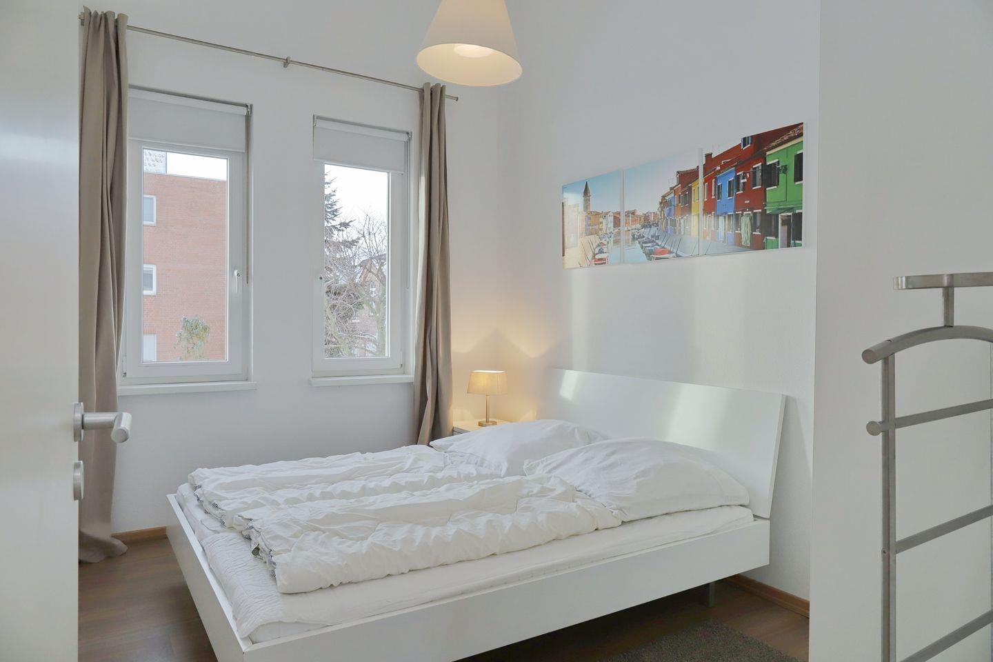 Helle und moderne Ferienwohnung in ruhiger Sackgassenlage mit Dachterrasse in Süd-/Westlage, kostenfreier Internetnutzung und Stellplatz.