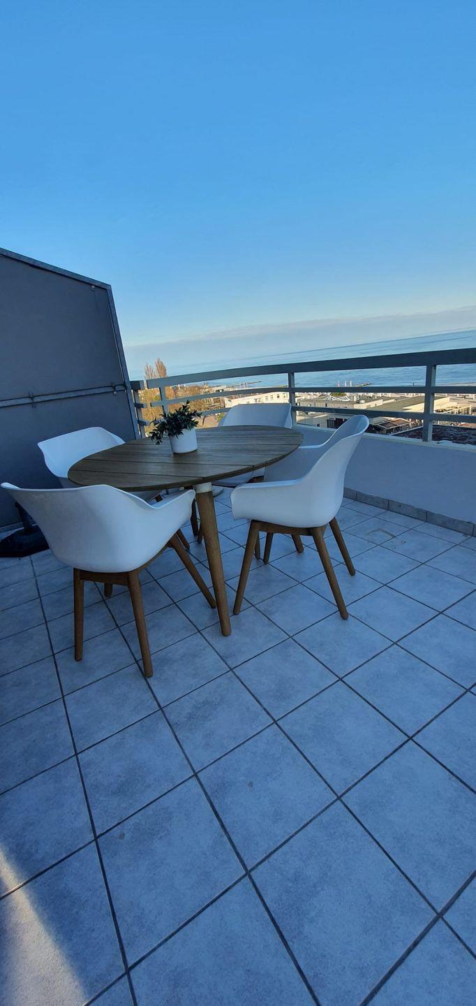 Ein weiteres Highlight der Wohnung ist die großzügige, teilüberdachte Dachterrasse, die direkt an den Balkon anschließt. Diese Terrasse bietet Ihnen noch mehr Platz zum Entspannen und Wohlfühlen. Sie ist teilweise überdacht, sodass Sie auch bei nicht ganz so schönem Wetter die frische Luft genießen können. Die Dachterrasse ist mit bequemen Sitzmöbeln ausgestattet, ideal für ein Sonnenbad oder ein gemütliches Beisammensein mit Familie und Freunden. Hier oben können Sie die Ruhe und den fantastischen Ausblick auf das Meer und die Seebrücke in vollen Zügen genießen.